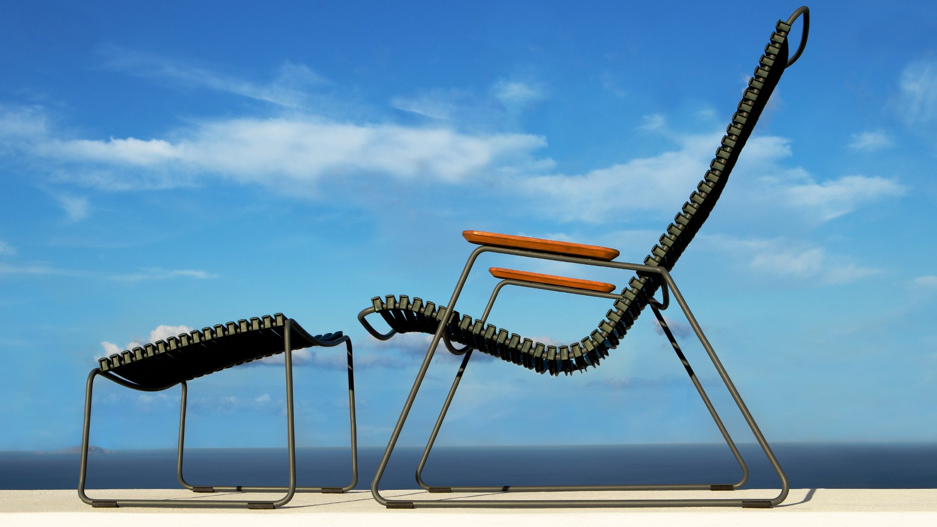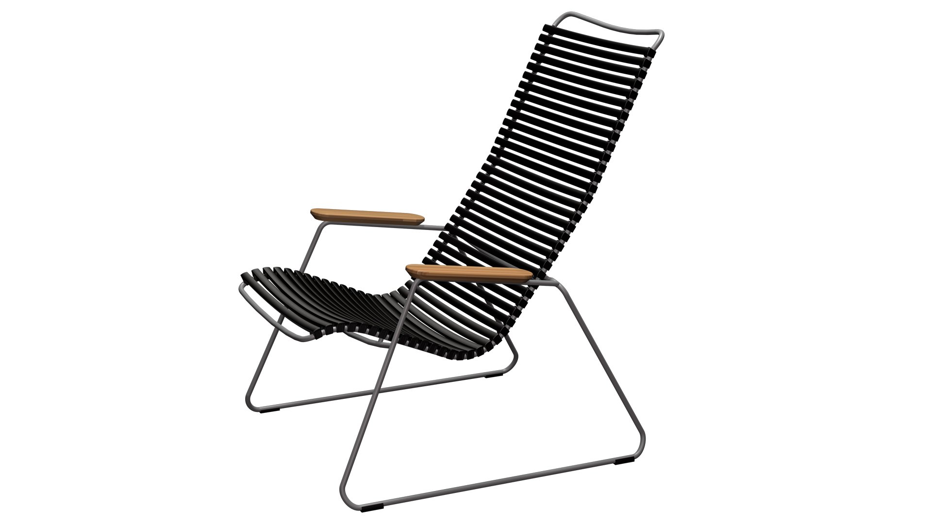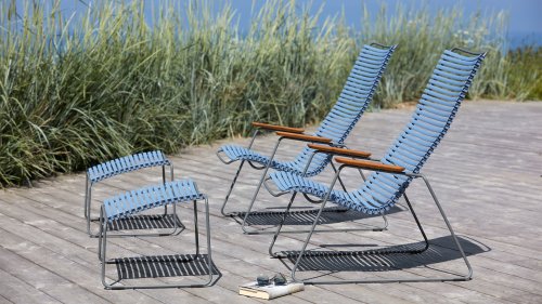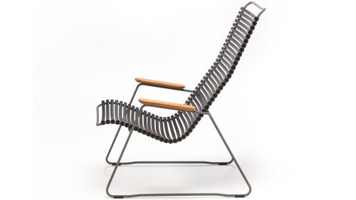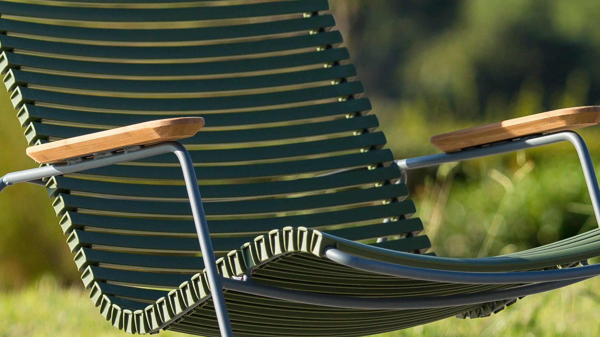 Die Houe Gartenstuhle hat ein Gestell aus grauem, pulverbeschichtetem Stahl. Das Metall überzeugt durch Witterungsbeständigkeit, Stabilität und Robustheit. Dank des genialen Clicksystems, kann die Sitz- und Rückenfläche aus Lamellen, je nach Bedarf und Laune, mit wenigen Clicks farblich ausgetauscht, gemischt und geändert werden. Die körperanpassungsfähigen Lamellen ermöglichen den Verzicht auf eine Kissenauflage. Der Click Gartenstuhl ist mit und ohne Armlehnen erhältlich. Die Armlehnen sind aus hochwertig geöltem Bambus.