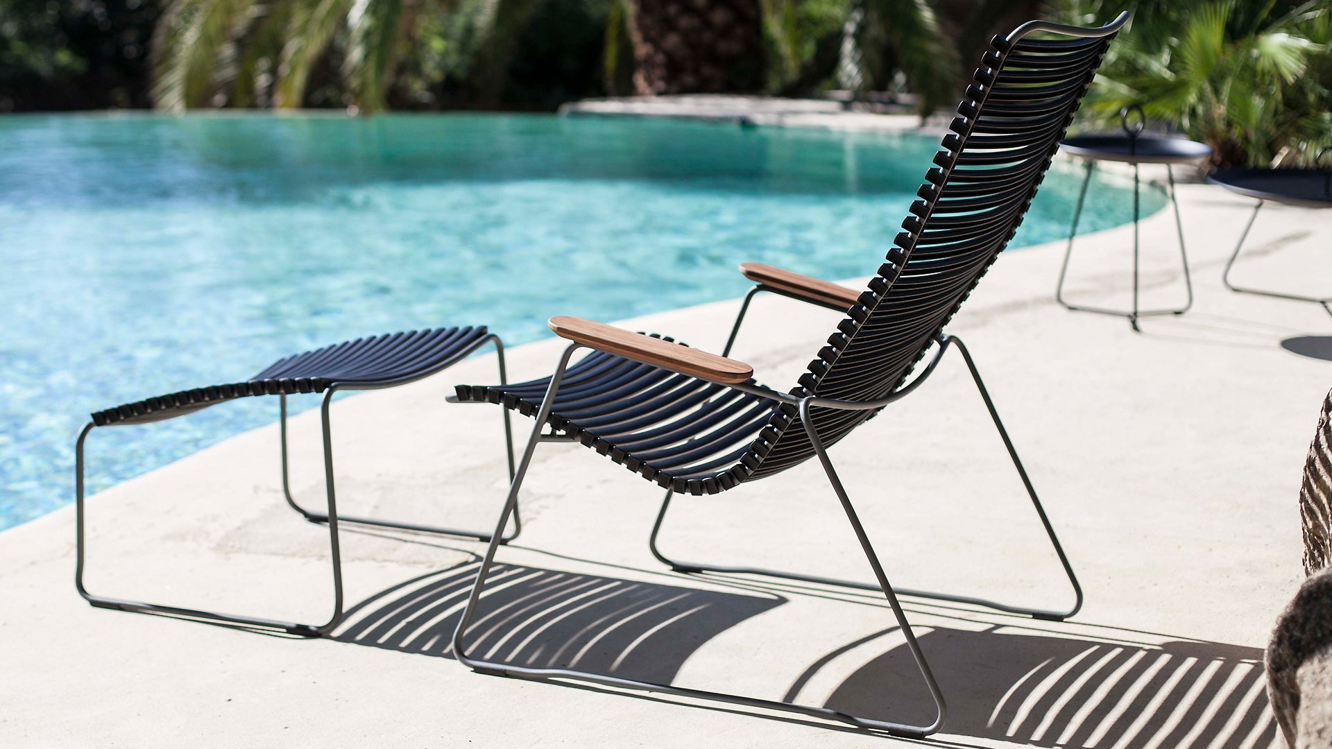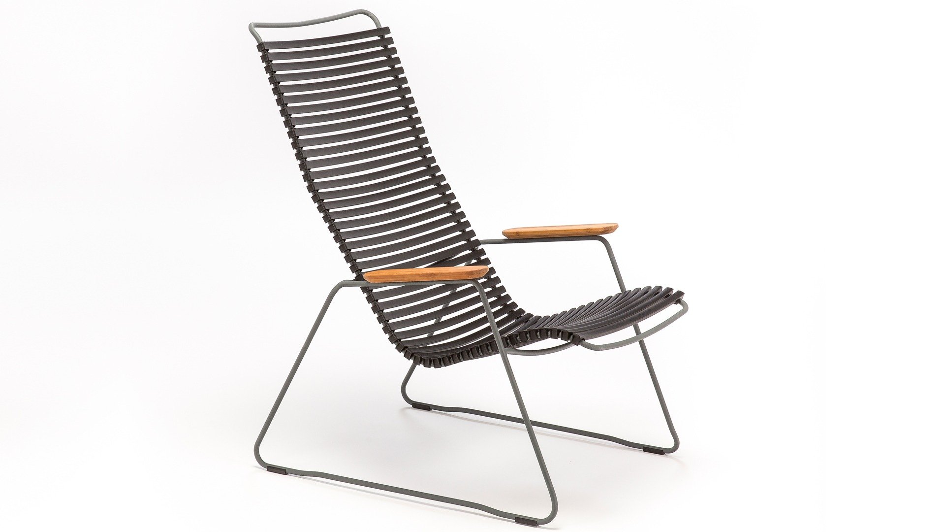 Der HOUE Click Lounge Sessel zeichnet sich durch sein elegantes Design in Kombination mit Praktikabilität aus. Die ergonomische Form in Kombination mit den Kunststofflatten sorgt dafür, dass dieser Stuhl ohne Kissen bequem ist. Die Armlehne aus Bambus gibt einen schönen Kontrast und eine natürliche Tönung. Mit dem optionalen Fußhocker lässt es sich richtig schön faulenzen.