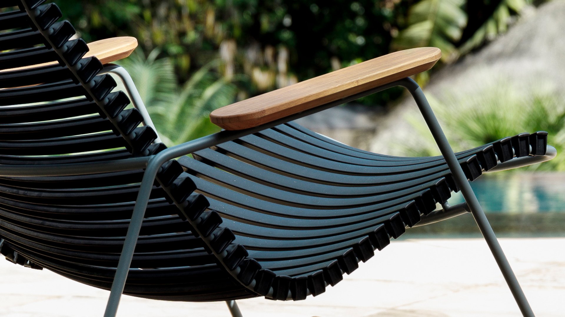 Der HOUE Click Lounge Sessel zeichnet sich durch sein elegantes Design in Kombination mit Praktikabilität aus. Die ergonomische Form in Kombination mit den Kunststofflatten sorgt dafür, dass dieser Stuhl ohne Kissen bequem ist. Die Armlehne aus Bambus gibt einen schönen Kontrast und eine natürliche Tönung. Mit dem optionalen Fußhocker lässt es sich richtig schön faulenzen.