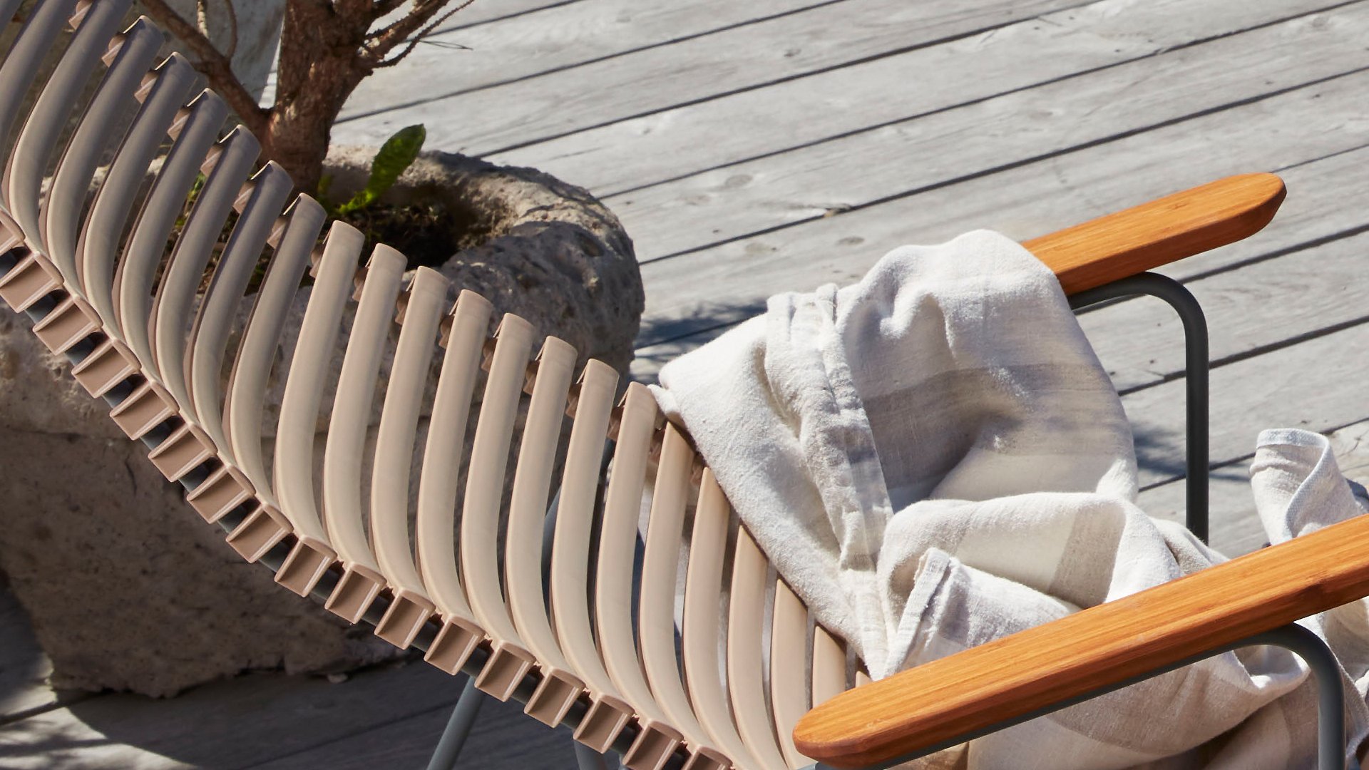 Der HOUE Click Sun Sonnenliegen Kollektion zeichnet sich durch sein elegantes Design in Kombination mit Praktikabilität aus. Die ergonomische Form in Kombination mit den Kunststofflatten sorgt dafür, dass dieser Stuhl ohne Kissen bequem ist. Die Armlehne aus Bambus gibt einen schönen Kontrast und eine natürliche Tönung. Enjoy Houe SunloungerLiege mit verstellbarem Rücken, Sonnen Sie sich in 7 Positionen!