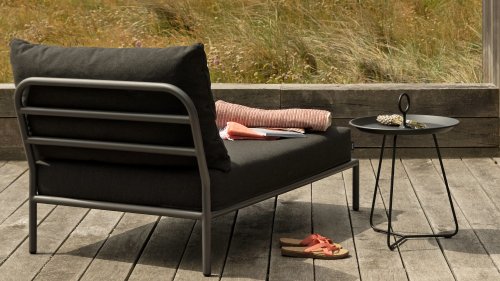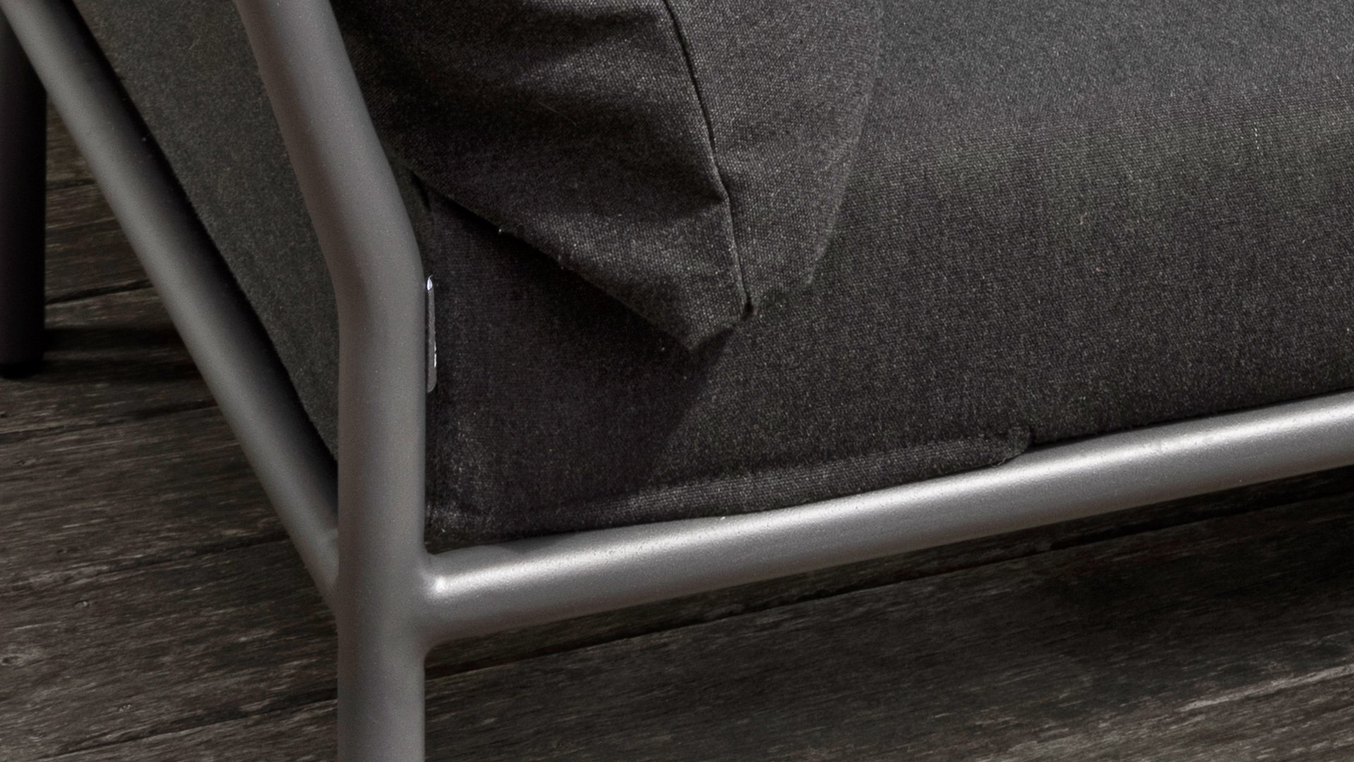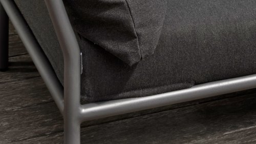 Bunte Faserenden aus dem Recycling des Primärmaterials können im Stoff auftreten und die Stofffarbe von Charge zu Charge variieren. Dadurch entsteht ein einzigartiger Stoff mit natürlichem Aussehen und Vintage-Charme. Der Stoff ist Oeko-tex-zertifiziert, wasserabweisend, schmutzabweisend und wartungsfreundlich. Für jedes Houe Level-Teil sind maßgeschneiderte Abdeckungen erhältlich! Die verschiedenen Elemente dieser Kollektion können auf unterschiedliche Weise miteinander kombiniert werden, was zu einer hochwertigen Lounge-Ecke auf Ihrer Terrasse führt. Das Sofamodul besteht aus pulverbeschichtetem Aluminium und verfügt über Kissen aus wasserabweisendem, dunkelgrauem Material.
