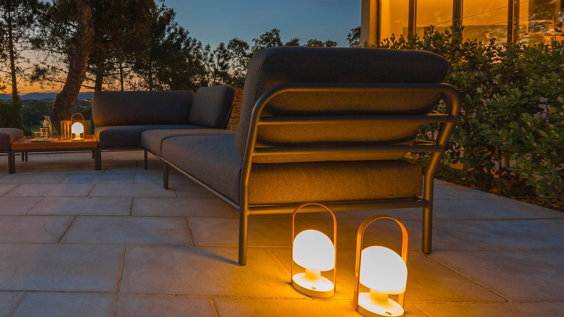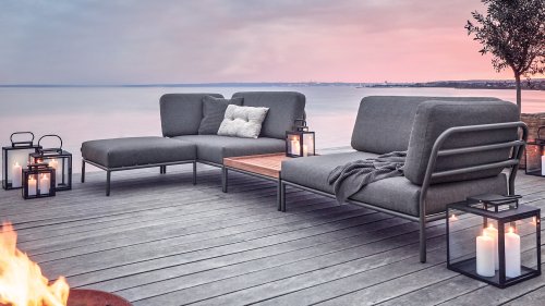 Die Houe Level Lounge, entworfen von Henrik Pedersen. Es geht um Ebene, sich der Natur zu stellen, sich auf den Horizont zu beziehen und Linien und Formen auf die nächste Ebene zu bringen! Der leichte Rahmen und die weichen Kissen schaffen sowohl Kontrast als auch Komfort - und locken mit einer entspannten Lounge-Atmosphäre. HOUE LEVEL ist eine Lounge-Serie, die aus 2 Sofamodulen besteht - einem links und einem rechts - einem einzelnen Stuhl, einer Ottomane, einem Couchtisch und einem Beistelltisch, wodurch die Module auf viele verschiedene Arten kombiniert werden können. Die Kissen in Alpengrün und Esche in Hellgrau / Ecru-Farbe bestehen aus Sunbrella Heritage-Material, das zu 50% aus recyceltem Acryl besteht.