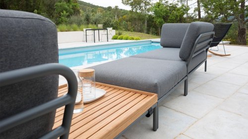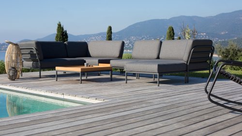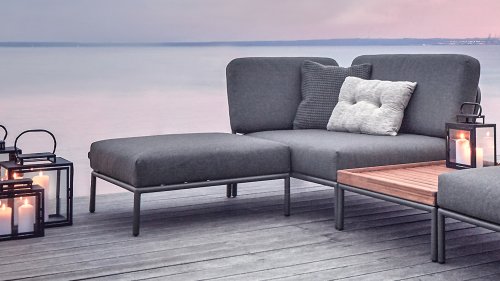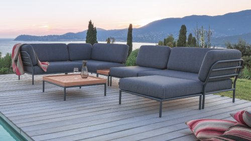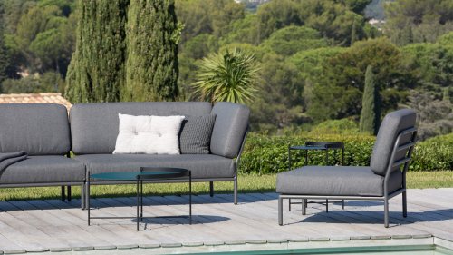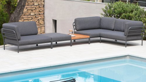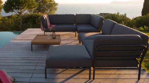 Bunte Faserenden aus dem Recycling des Primärmaterials können im Stoff auftreten und die Stofffarbe von Charge zu Charge variieren. Dadurch entsteht ein einzigartiger Stoff mit natürlichem Aussehen und Vintage-Charme. Der Stoff ist Oeko-tex-zertifiziert, wasserabweisend, schmutzabweisend und wartungsfreundlich. Für jedes Houe Level-Teil sind maßgeschneiderte Abdeckungen erhältlich! Die verschiedenen Elemente dieser Kollektion können auf unterschiedliche Weise miteinander kombiniert werden, was zu einer hochwertigen Lounge-Ecke auf Ihrer Terrasse führt. Das Sofamodul besteht aus pulverbeschichtetem Aluminium und verfügt über Kissen aus wasserabweisendem, dunkelgrauem Material.