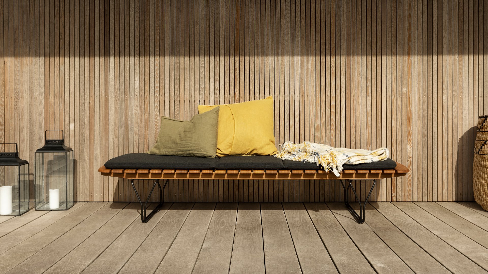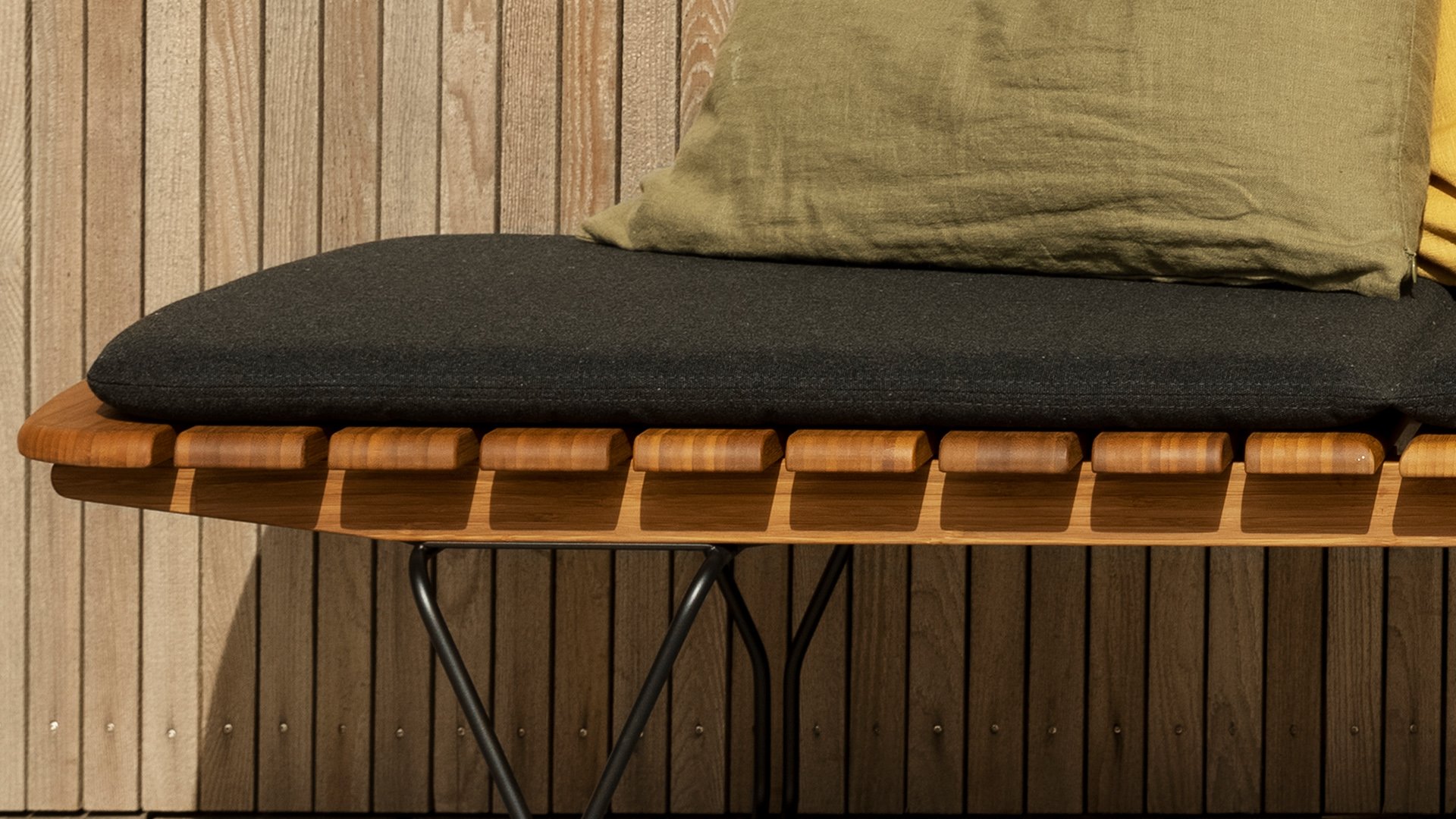 Der HOUE Molo ist eine Perle unter den Liegen. Das schlanke Design macht in jedem Garten eine gute Figur. Die Liege besteht aus Bambus mit einem schwarz pulverbeschichteten Stahlgestell. In Kombination mit den hochwertigen Sunbrella-Kissen ein Volltreffer. Kissen sind in verschiedenen Farben erhältlich.