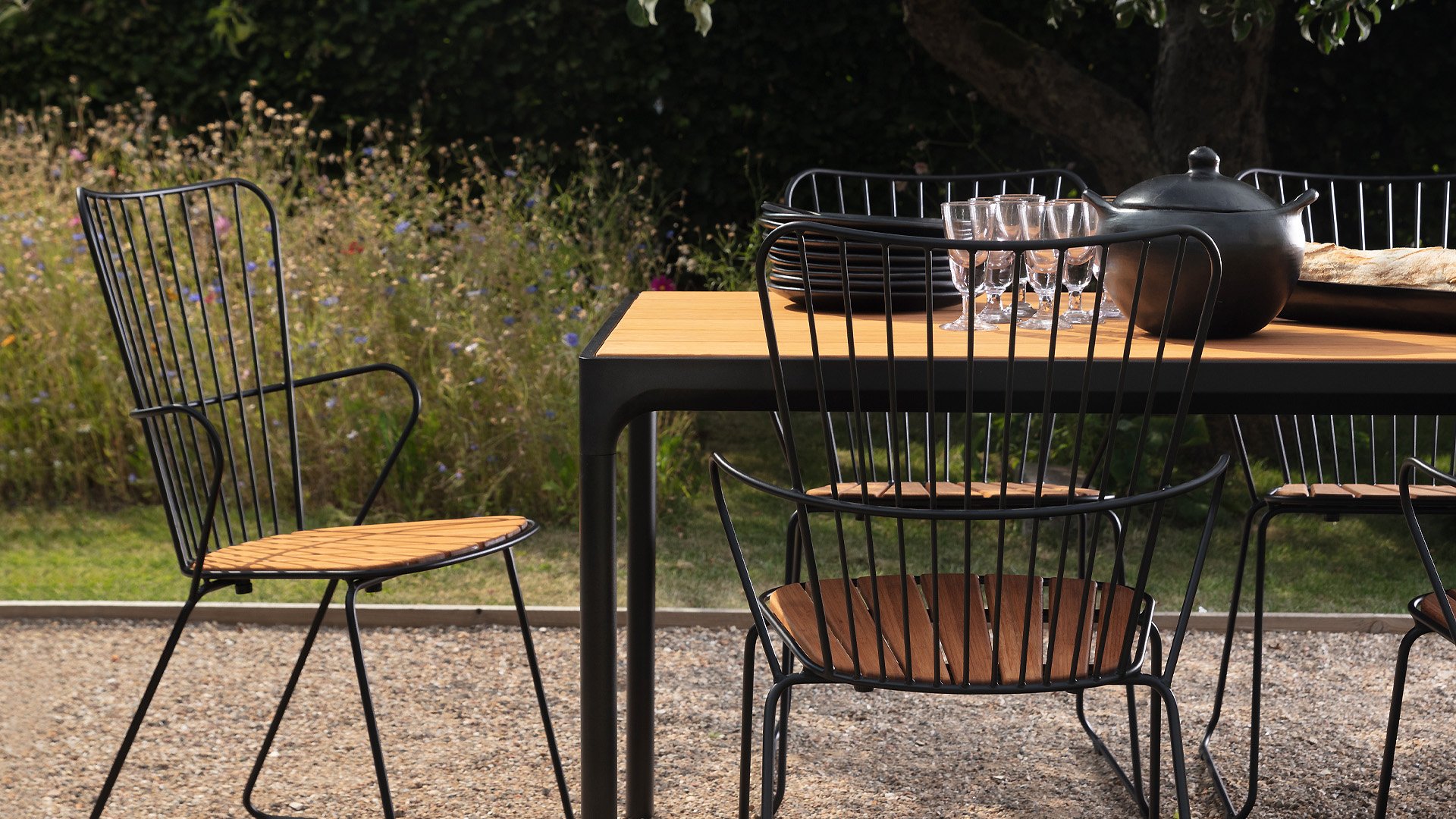 HOUE Paon Gartenstuhl Collection: Ein Sitzkomfort, den Sie von einem Metallstuhl nicht erwarten würden! Erhältlich in Poan Esszimmerstuhl sowie Barstuhl! Bring Frankreich in den Hinterhof!