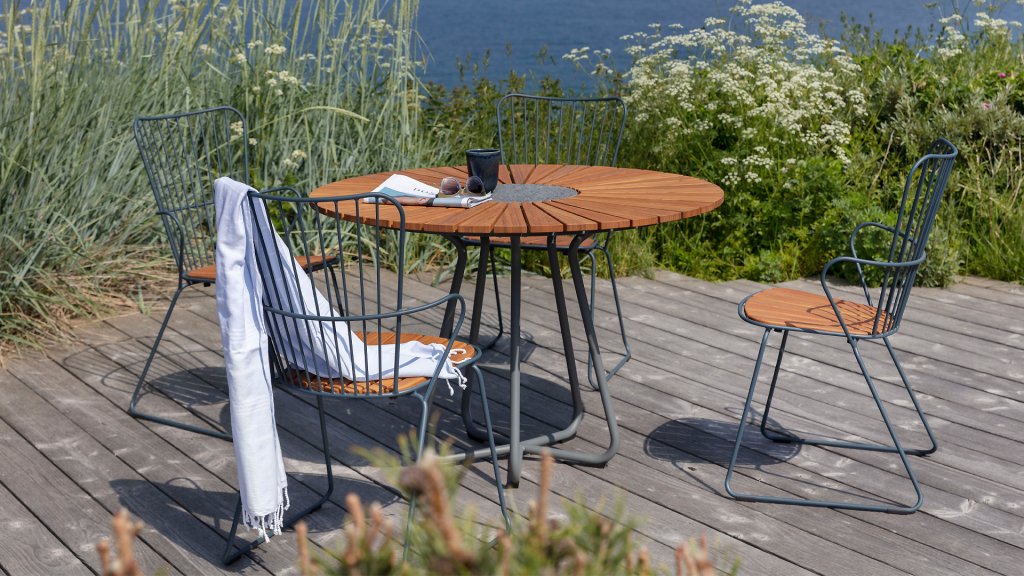 Der Houe Circle ist ein runder Gartentisch mit einer schönen Platte aus gemischtem Bambus. Den Kreis gibt es in 2 Größen, nämlich 150cm und 110cm. Das Schöne an diesem runden Tisch ist, dass er viel Platz bietet. In der Mitte des Kreistisches befindet sich ein zusammengesetzter Stein. Dies ist nützlich, wenn Sie Ihre heißen Pfannen usw. Das skandinavische Design in Kombination mit dem nachhaltigen Bambus sorgt dafür, dass dieser Tisch in jedem Garten gut zur Geltung kommt. Bambus ist eine schnell wachsende Pflanze und daher wesentlich nachhaltiger als Teak. Wir empfehlen den Tisch 2-3 mal im Jahr zu ölen. Wenn der Tisch gut gepflegt wird, hält er sehr lange und behält seine schönen Farben.