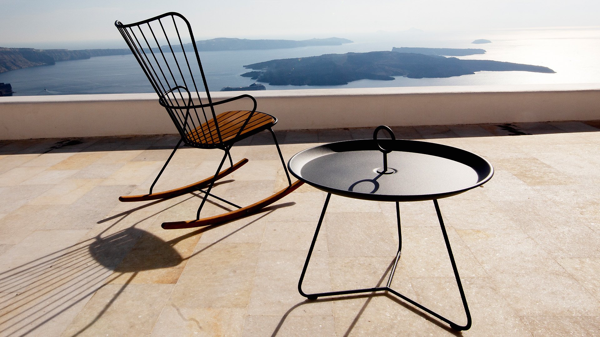 Genießen Sie das Schaukeln in einem Loungesessel mit dem Schaukelstuhl von HOUE, der sowohl für drinnen als auch für draußen geeignet ist!