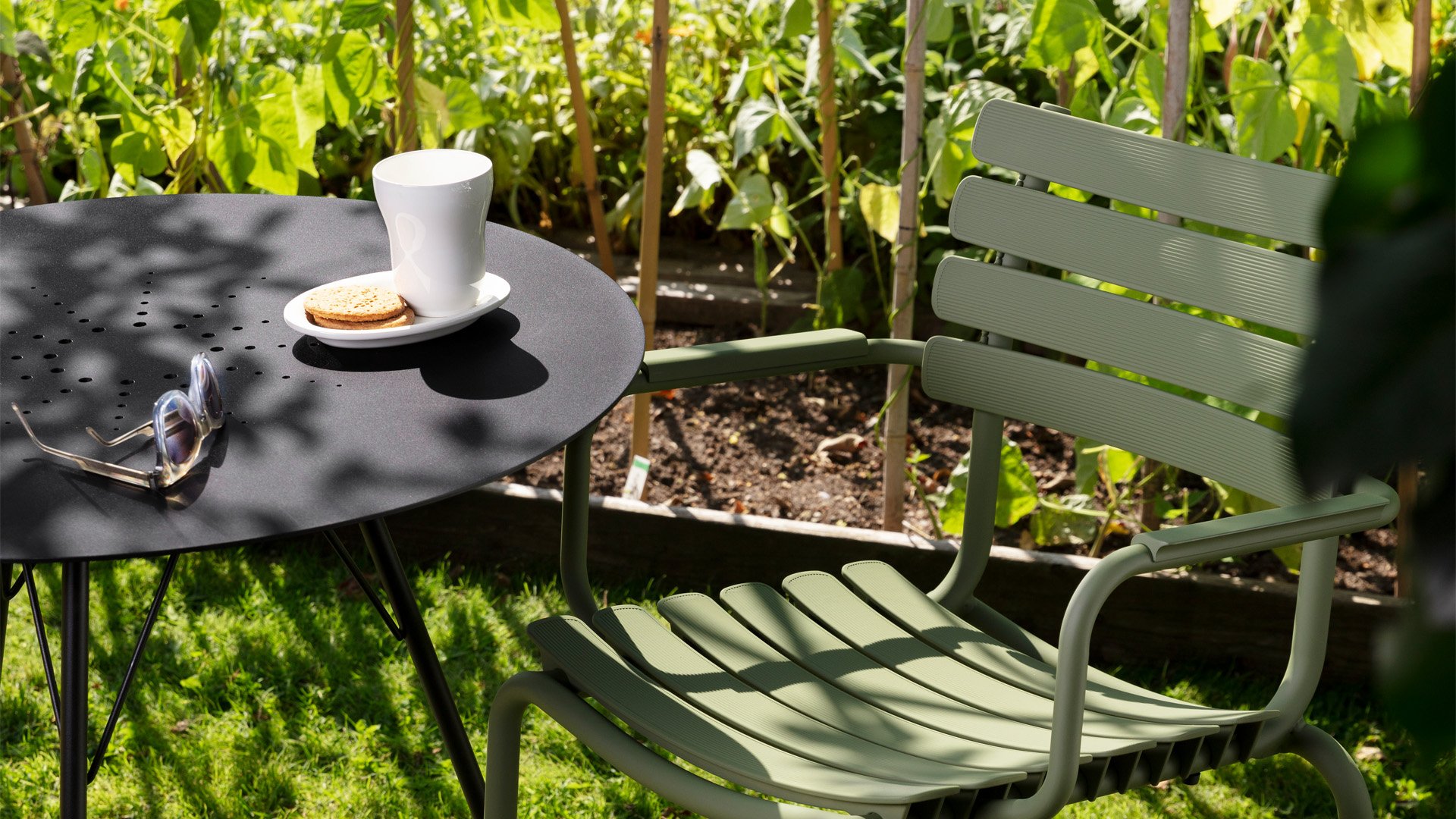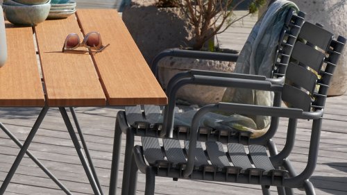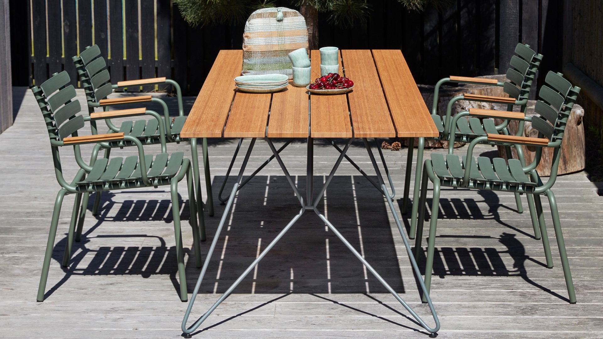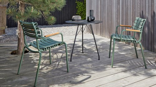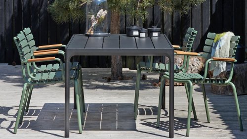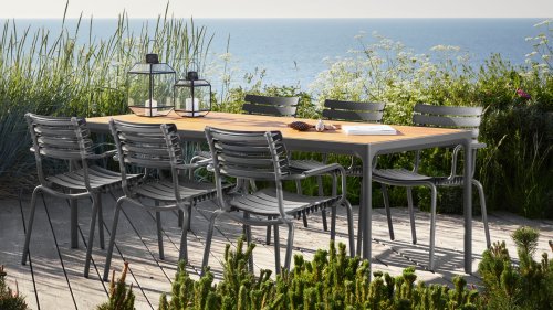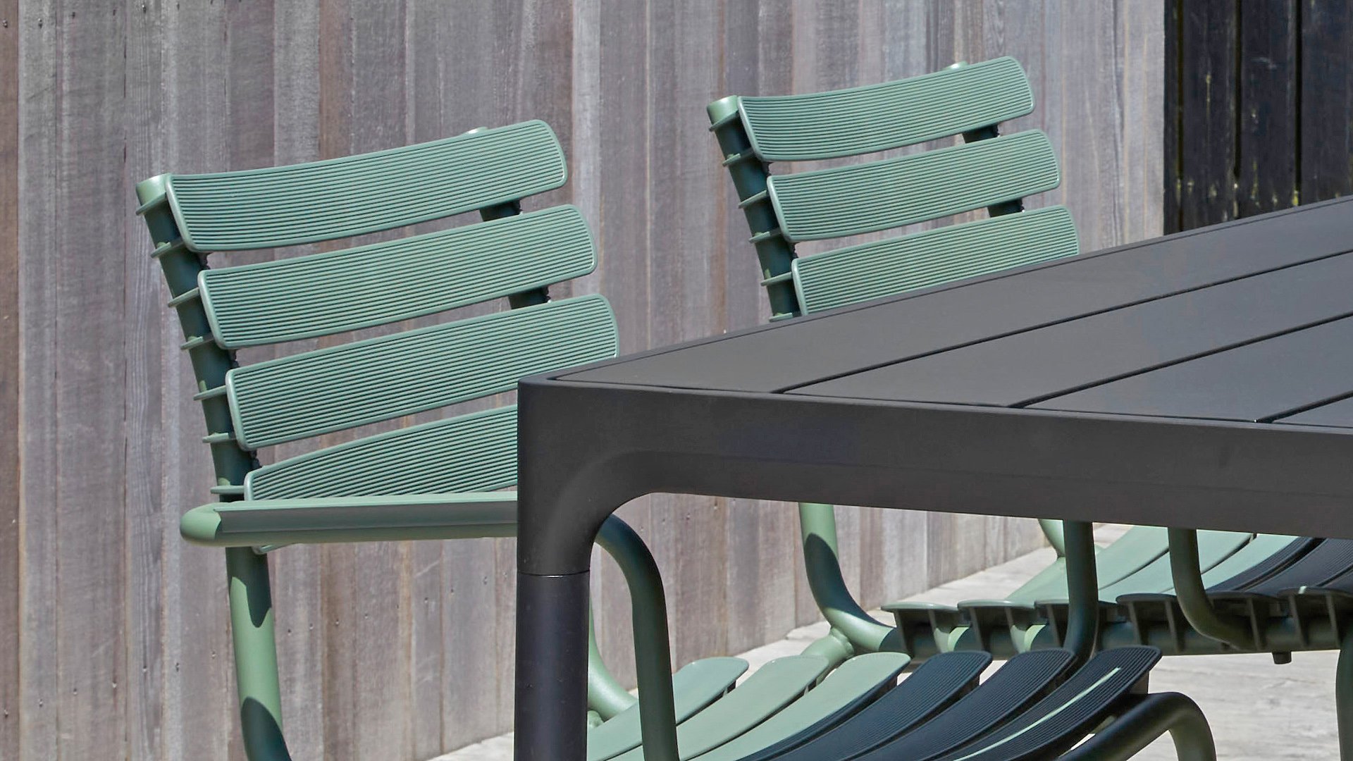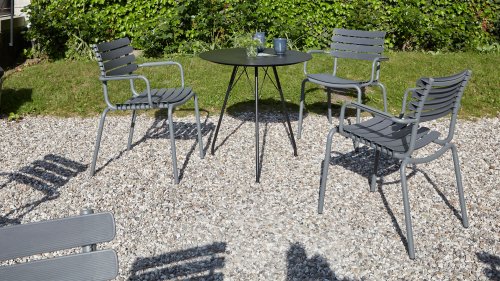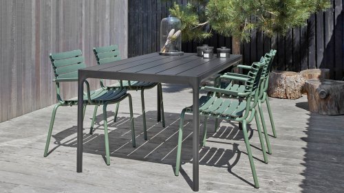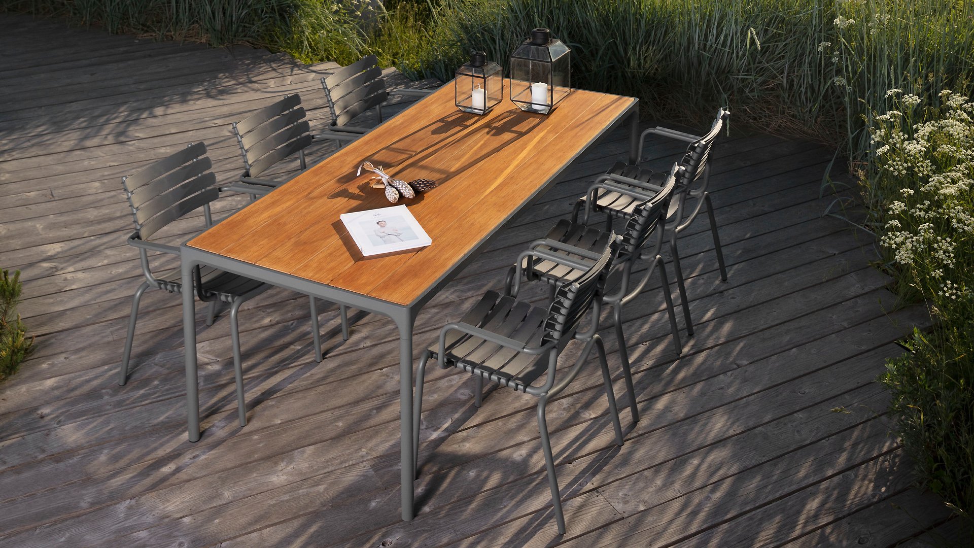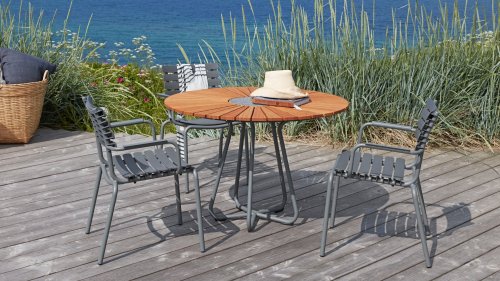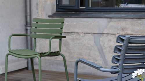 HOUE ist ein dänisches Designlabel, das seit 2007 hochwertige Designmöbel für den Innen- und Außenbereich entwirft und produziert. Die Designs von HOUE enthalten immer eine besondere Kombination aus Design einerseits und Komfort andererseits. Um dies zu erreichen, investiert HOUE viel Zeit in den Möbeldesignprozess. Die durchdachten Designs werden nur in wenigen Fabriken hergestellt, mit denen HOUE seit vielen Jahren zusammenarbeitet. Die Materialien für die Möbel werden sorgfältig ausgewählt. Die Materialien der HOUE-Möbel sind daher nicht nur schön anzusehen, sondern auch sehr praktisch zu verwenden: Sie sind bequem und halten jahrelang. Auf diese Weise können Sie sicher sein, dass die HOUE-Stühle die Qualität haben, die Sie von HOUE gewohnt sind. Die ReClips-Esskollektion von HOUE besteht aus clever gestalteten Kunststofflatten, die mit Pulverbeschichtung auf einen Aluminiumrahmen geklipst sind.