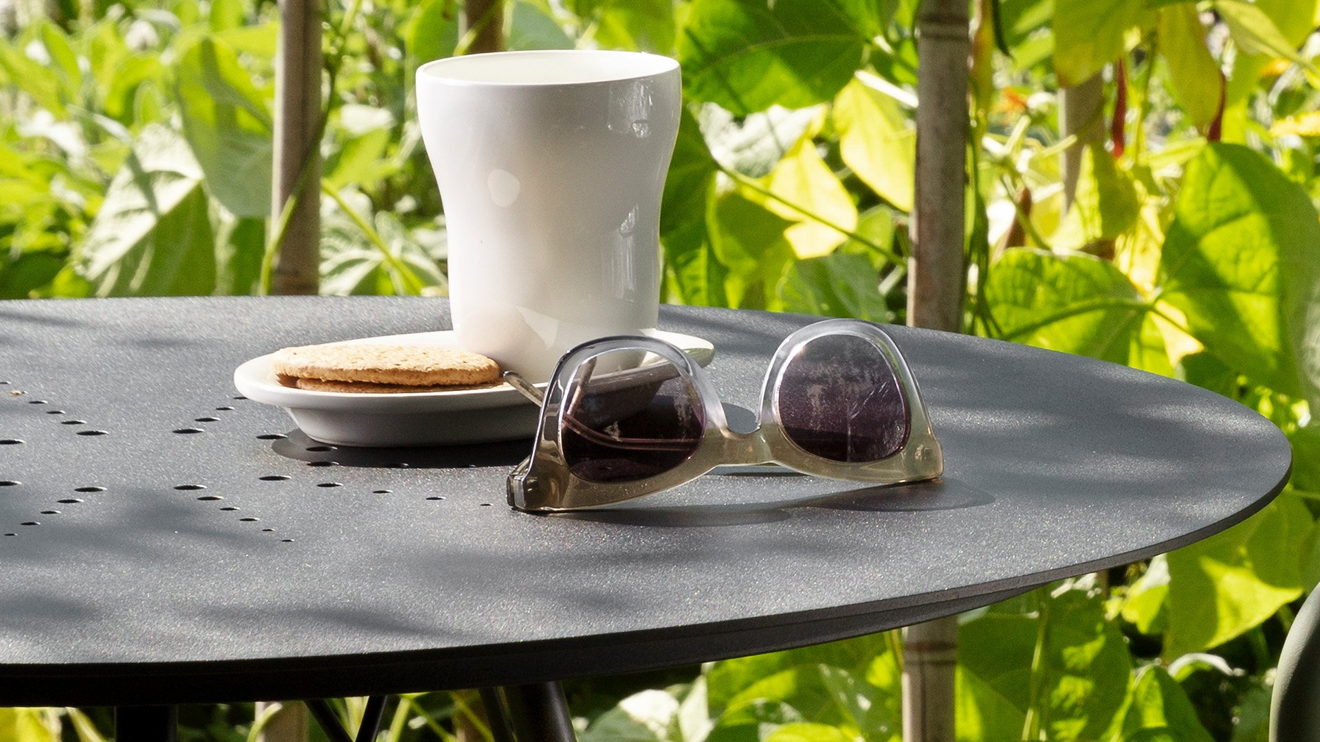 Was für ein stilvoller Bistrotisch dieser HOUE Circum Tisch ist. Die elegante Tischplatte aus Aluminium in Kombination mit den stilvollen Beinen machen diesen Tisch zu einer großartigen Ergänzung für jeden Garten oder Balkon. Kombinierbar mit der gesamten Dining-Kollektion von HOUE. Können Sie sich vorstellen, an diesem Tisch Kaffee zu trinken?