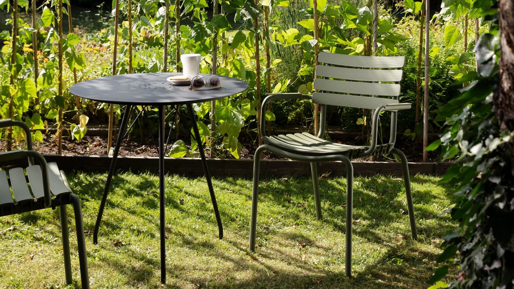 Leichtgewicht mit minimalistischem Design. Hergestellt aus vollständig recyceltem Kunststoff! Der Gartenstuhl wurde von Henrik Pedersen entworfen, einem ursprünglich dänischen Designer, den wir bereits von dem ikonischen Click! Erhältlich in 4 Farben, mit Armlehne aus Bambus oder Aluminium. Auch in Lounge und Rocking Chair verfügbar.