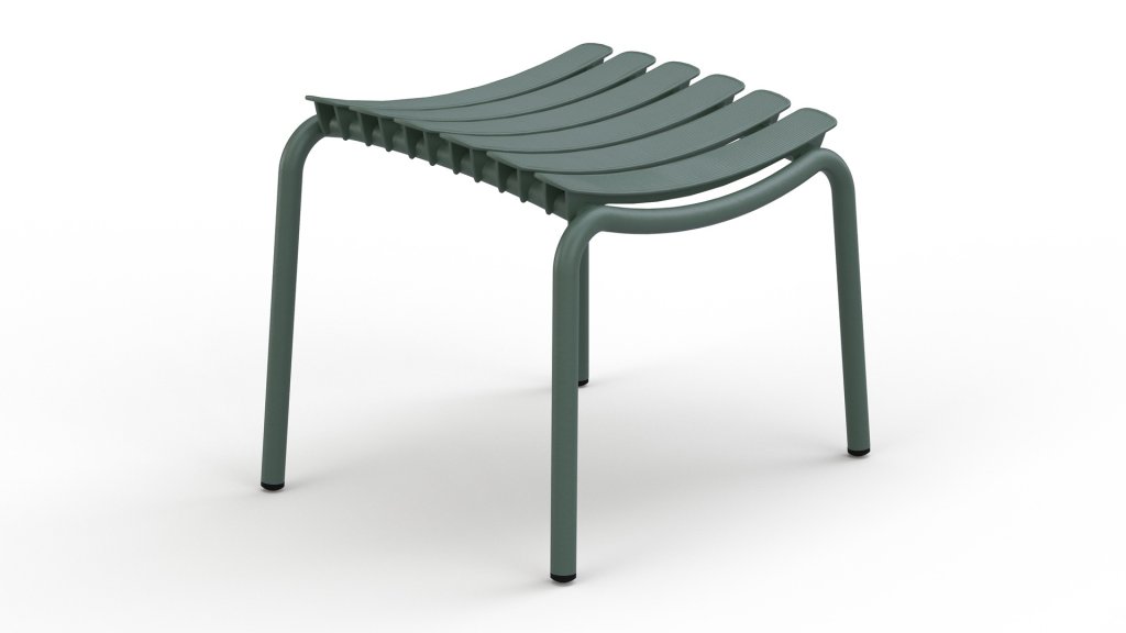Der Houe Reclips Fußhocker passt zum Reclips Lounge Chair. Der Rahmen besteht aus pulverbeschichtetem Aluminium und die Lamellen aus recyceltem Kunststoff.