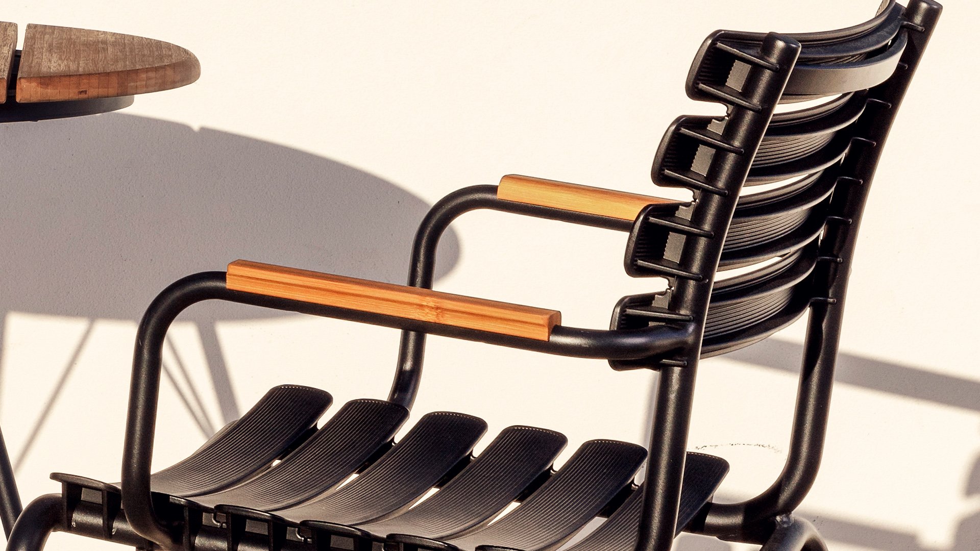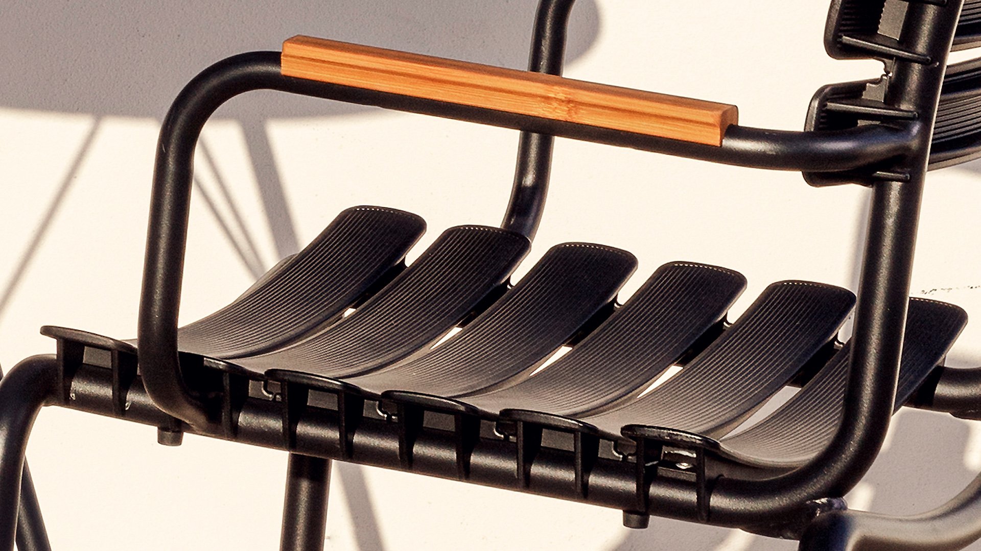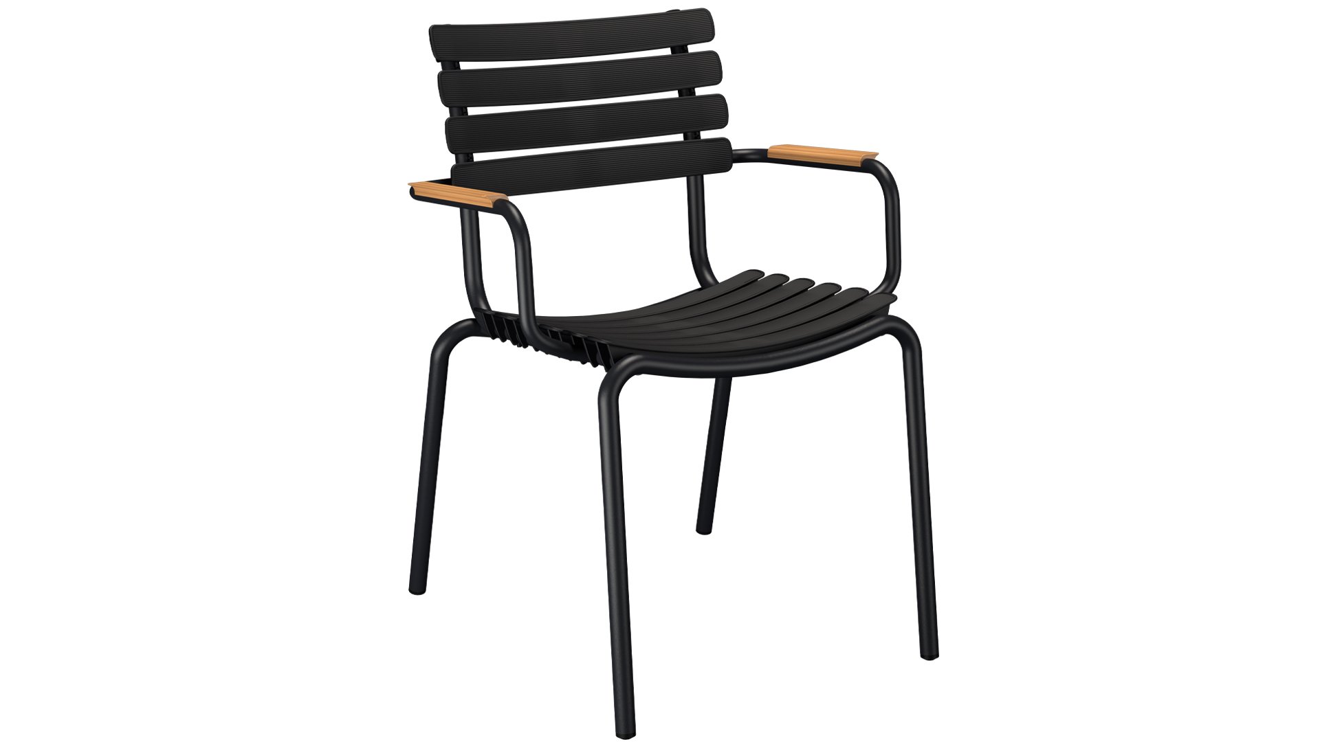 Die HOUE Reclips-Serie besteht aus recyceltem Kunststoff. In Kombination mit dem pulverbeschichteten Aluminiumrahmen ist dies ein wartungsfreier Gartenstuhl. Durch die ergonomisch geformte Rückenlehne ist der Stuhl auch ohne Kissen sehr bequem zu benutzen. Ein Barstuhl, ein Gartenstuhl und ein Schaukelstuhl sind ebenfalls in dieser Serie erhältlich. Jeder Stuhl ist mit einer Armlehne aus Aluminium oder Bambus erhältlich.