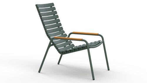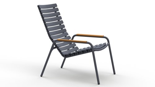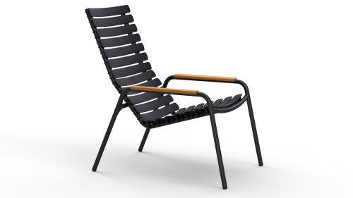 Die ReClips Lounge-Kollektion von HOUE besteht aus clever gestalteten Kunststofflatten, die mit Pulverbeschichtung auf einen Aluminiumrahmen geklipst sind. Die Komponenten der großen Lamellen wurden sorgfältig zusammengebaut, um genau die richtige Festigkeit und Elastizität zu gewährleisten. Das Aluminium in Kombination mit dem UV-geschützten Kunststoff reduziert die Wartung auf ein Minimum. THE HOUE ReClips wurde mit Blick auf Komfort entwickelt und so geformt, dass Sie einen hervorragenden, kissenfreien Komfort erhalten, sodass Sie sich stundenlang entspannen können. Ein stilvoller Stuhl mit nachhaltigem Charakter. So lassen sich die ReClips-Stühle mit Bambusarmlehnen oder Aluminium der dänischen Marke HOUE am besten beschreiben. Die breiten Lamellen von ReClips werden aus Kunststoffabfällen hergestellt und in Dänemark hergestellt. Dies bedeutet, dass nicht nur Material wiederverwendet wird, sondern auch während des Produktionsprozesses eine erhebliche Menge an Energie eingespart wird. ReClips ist nicht nur nachhaltig, sondern auch eine Augenweide.