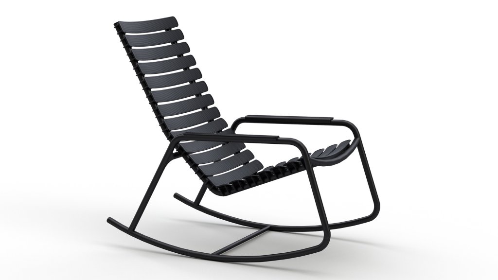 Der HOUE ReClips Schaukelstuhl ist zum Entspannen gemacht. Der Stuhl besteht aus einem pulverbeschichteten Aluminiumgestell mit Kunststofflatten. Die Lamellen werden aus recyceltem Hausmüll hergestellt. Aufgrund ihrer ergonomischen Form bietet die Serie auch ohne Kissen einen hervorragenden Sitzkomfort. Die gesamte ReClips-Serie besteht aus einem Gartenstuhl, einem Loungesessel und einem Schaukelstuhl.