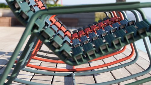 Alle Farben sind mit Armlehnen aus Bambus oder Aluminium erhältlich.
