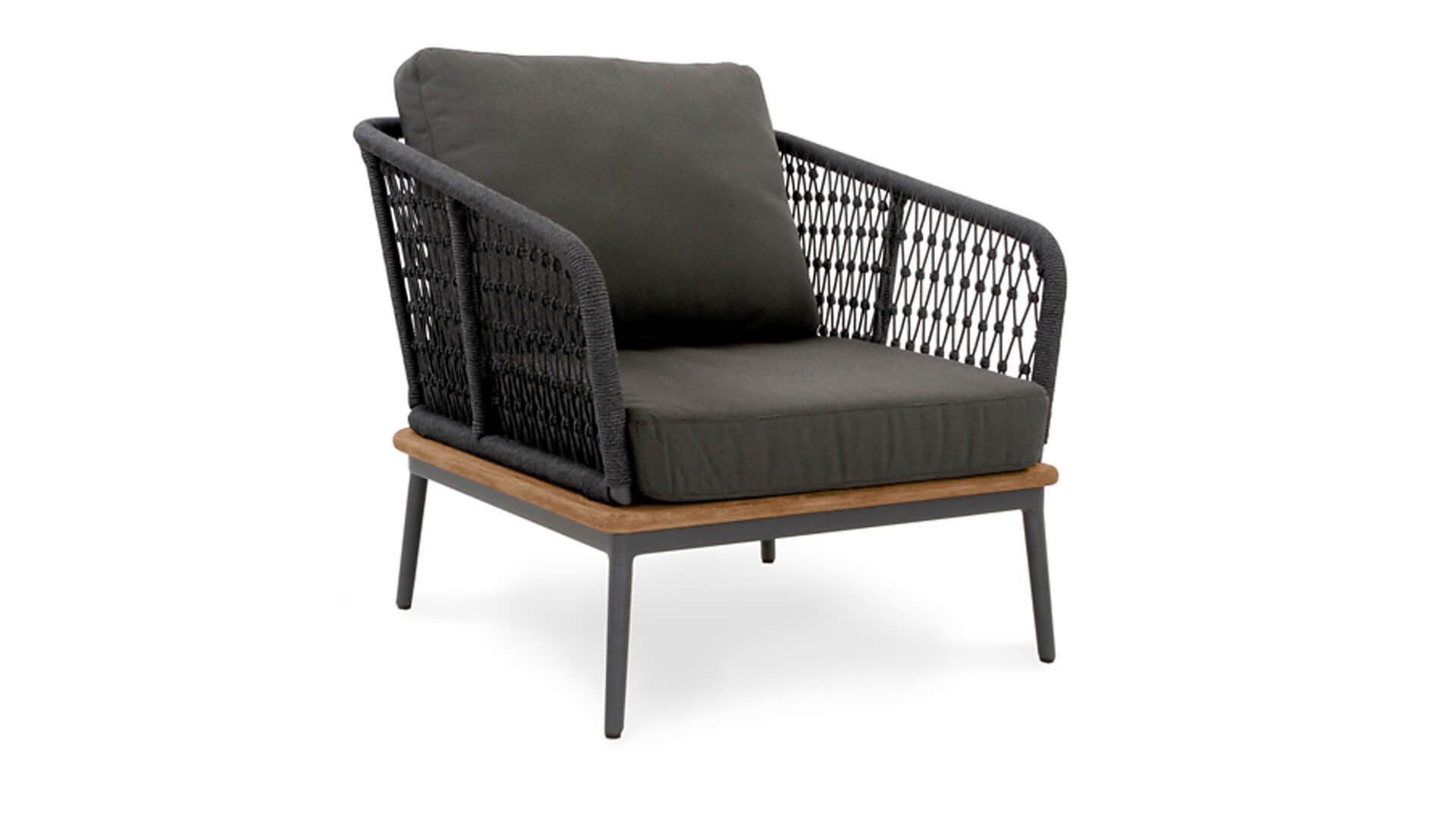 Für die Kordelbespannung von Stühlen, Loungesesseln und Barhockern verwenden wir eine hochwertige, witterungsbeständige Kordel aus Polypropylen. Die durchgefärbte Kunststoffkordel ist wasserabweisend, UV-beständig, reißfest und äußerst formstabil. Selbst Fett dringt nicht tiefer ins Material ein und kann problemlos entfernt werden. Dank dieser Eigenschaften eignet sich Kordelflechtung hervorragend für die Verwendung im Außenbereich. Das geflochtene Material verleiht den Möbelstücken eine organische Textur und schafft damit eine Verbindung von Möbel und Natur.