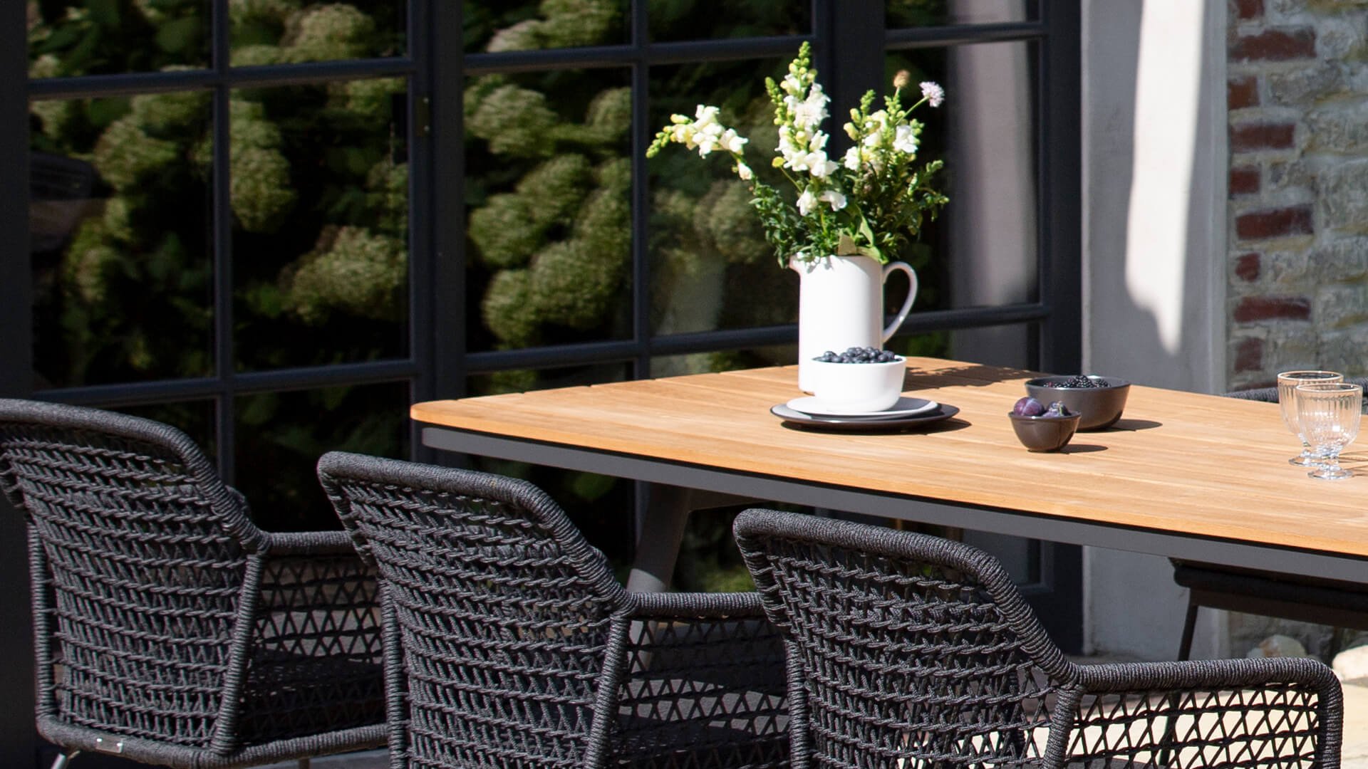Weniger ist mehr, innerhalb unserer Niehoff Kubu-Serie haben die Gartenmöbel ein minimalistisches, aber ländliches Design mit hauptsächlich funktionaler Schlichtheit und anmutigem Design. Die schönen Rahmen sind aus Aluminium für optimale Witterungsbeständigkeit. Die Basis ist zerbrechlich, aber sehr stark, pulverbeschichtetes Aluminium in Anthrazitfarbe. Was in Kombination mit dem schönen anthrazitfarbenen geflochtenen Seil einen modernen und dennoch "warmen" Look ergibt. Die runden Formen halten dieses Design vollkommen im Gleichgewicht.
