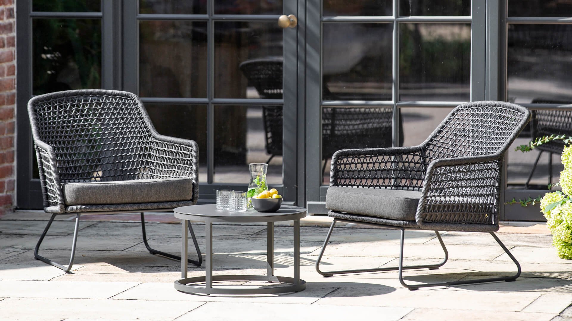 Neben Esszimmern, großen Sofalandschaften und voll funktionalen Outdoor-Küchen erobern jetzt auch moderne Loungesessel Terrassen und Balkone. Denn Cocktailsessel sind damals wie heute wahre Allroundtalente, wenn es um stylishe und gemütliche Einrichtungen geht. Höchster Sitzkomfort bei minimalem Platzbedarf lautet das Motto, welches der Niehoff Garden KUBU Loungesessel mit Leichtigkeit erfüllt! Der Designer Sven Dogs hat es bei KUBU geschafft Retro Formen und minimalistische Designelemente zu verbinden und so eine zeitgemäße Hommage an den Klassiker der 1950er Jahre zu kreieren. Der Sessel besitzt ein leichtes pulverbeschichtetes Aluminiumgestell, das an Rücken- und Armlehnen mit hochwertiger Kordelflechtung bespannt ist. Der entspannte Loungecharakter des Sessels wird durch großzügige Sitz- und Rückenpolster hervorgehoben.
