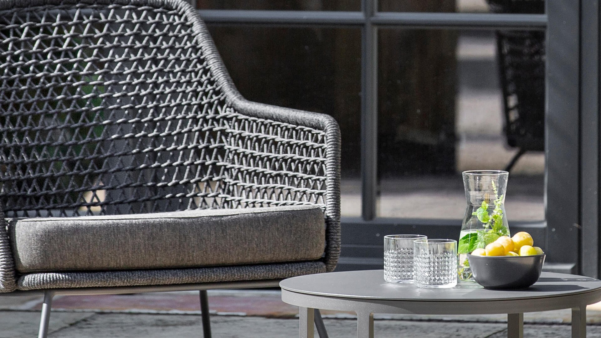 Klare geradlinige Proportionen und eine außergewöhnliche Kordelflechtung zeichnen die Loungegruppe Kubu aus dem Hause Niehoff Garden aus. Eine Besonderheit und zugleich ein optisches Highlight ist die besondere Art der Kordelflechtung. Sie verleiht dem Kubu Lounge je nach Betrachtungswinkel unterschiedliche graphische Impressionen.