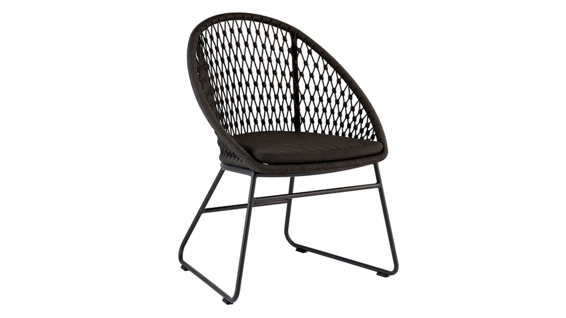 Die aufwendige Flechttechnik mit einer Acrylkordel hebt die bemerkenswerte Designoptik dieses KUTA Stuhls von NIEHOFF hervor. Ein ovaler umlaufender Rahmen nimmt den Benutzer auf und umgibt ihn mit einem entspannten Sitzkomfort. Die Kunstfaserkordel ist absolut wetterbeständig und verleiht dem Stuhl eine besondere Designstruktur. Die Sitzschale besteht aus einem stabilen Aluminiumrahmen umflochten mit einer Acrylkordel in der Farbe anthrazit. Mit dem Kufenuntergestell aus pulverbeschichteten Aluminium, eignet sich der Stuhl hervorragend sowohl für die Terrasse als auch für den Wohnbereich. Der Stuhl KUTA wird inkl. Sitzkissen geliefert.