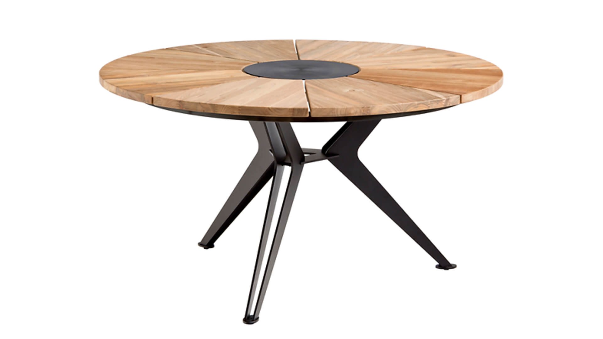 1 x Niehoff Nexor tafel Ø 140cm Teak gebürstet-Stahl pulverbeschichtet