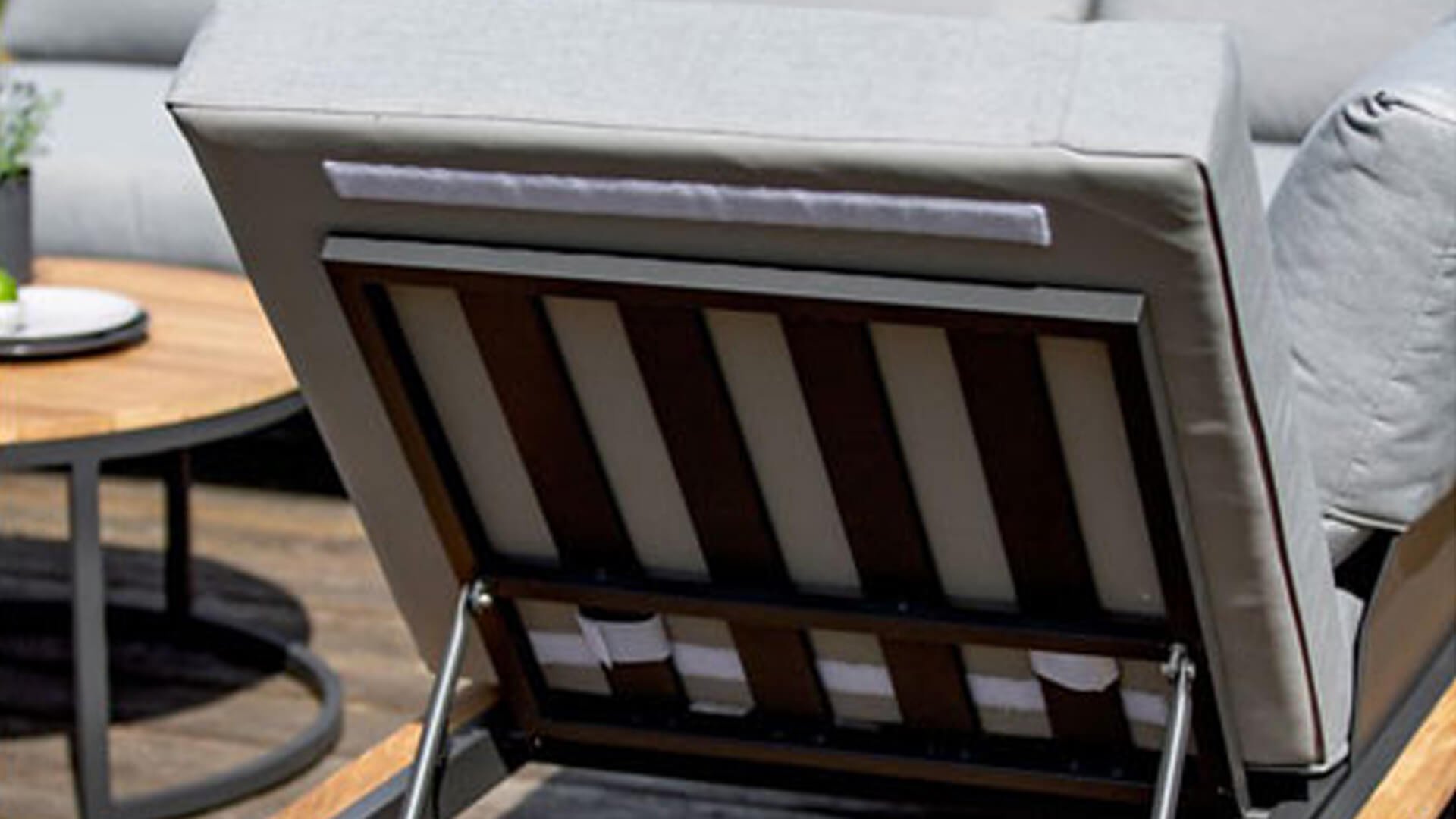 Das Modulsystem Niehoff Serra bietet einen hohen Grad an Flexibilität, so lässt sich durch das modulare Elementsystem mühelos eine individuelle, für Sie passende Zusammenstellung bilden. Der Gestellrahmen der Loungegruppe Serra ist aus pulverbeschichtetem Aluminium-Rundrohr gefertigt und die Sitzflächen bestehen aus Teakholz. Der Rahmen ist absolut witterungsbeständig, das Bezugsmaterial der Kissen ist wasserabweisend und UV-beständig. Damit Sie lange Freude an dieser außergewöhnlichen Loungegruppe haben, empfehlen wir dennoch, die Kissen bei feuchter Witterung im Trockenen zu lagern oder mit einer entsprechenden Haube zu arbeiten.Das linke und rechter Sitzelement des Serra 3-Sitzer-Sofas ist verstellbar, sodass Sie bequem mit erhobenem Kopf liegen und so eine wunderbare „Sonnenliege“ haben!