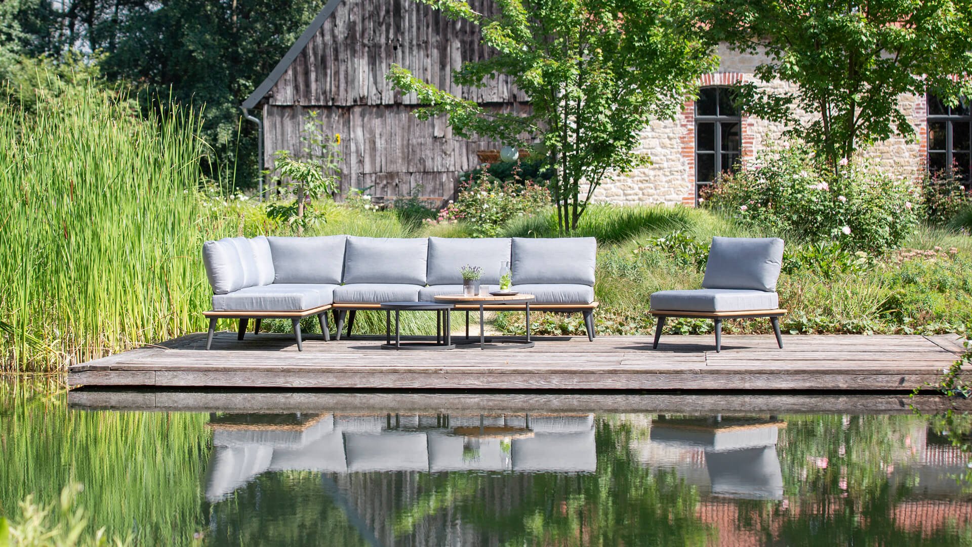 | Materialien Loungegruppe | Teak, Pulverbeschichtet Aluminium/Stahl |