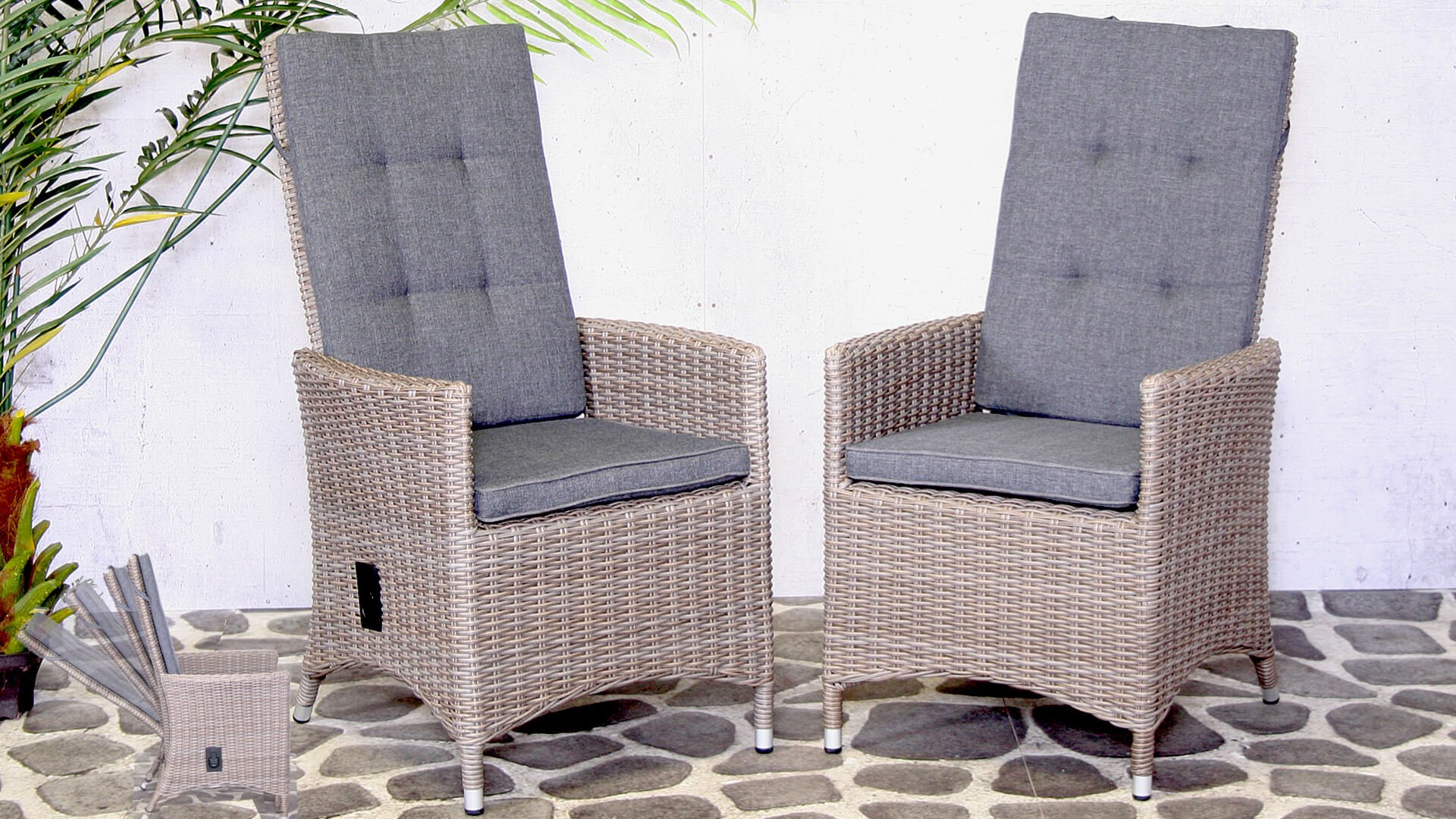 Sens-Linie Casablanca. Auf der Suche nach Gartenstühlen im Retro-Look? Dann ist dies die richtige Adresse. Dieser Stuhl holt die Zeit zurück in die Gegenwart, das Geflecht kommt in der warmen Farbe Kubu. Die Rückenlehne dieses Stuhls ist auch mit einem Hebel auf der rechten Seite verstellbar, lassen Sie den Hebel los, wenn die gewünschte Position erreicht ist. Ideal für den Bauch nach dem Abendessen! Das Kissen ist im Lieferumfang enthalten und besteht aus Olefin-Stoff.