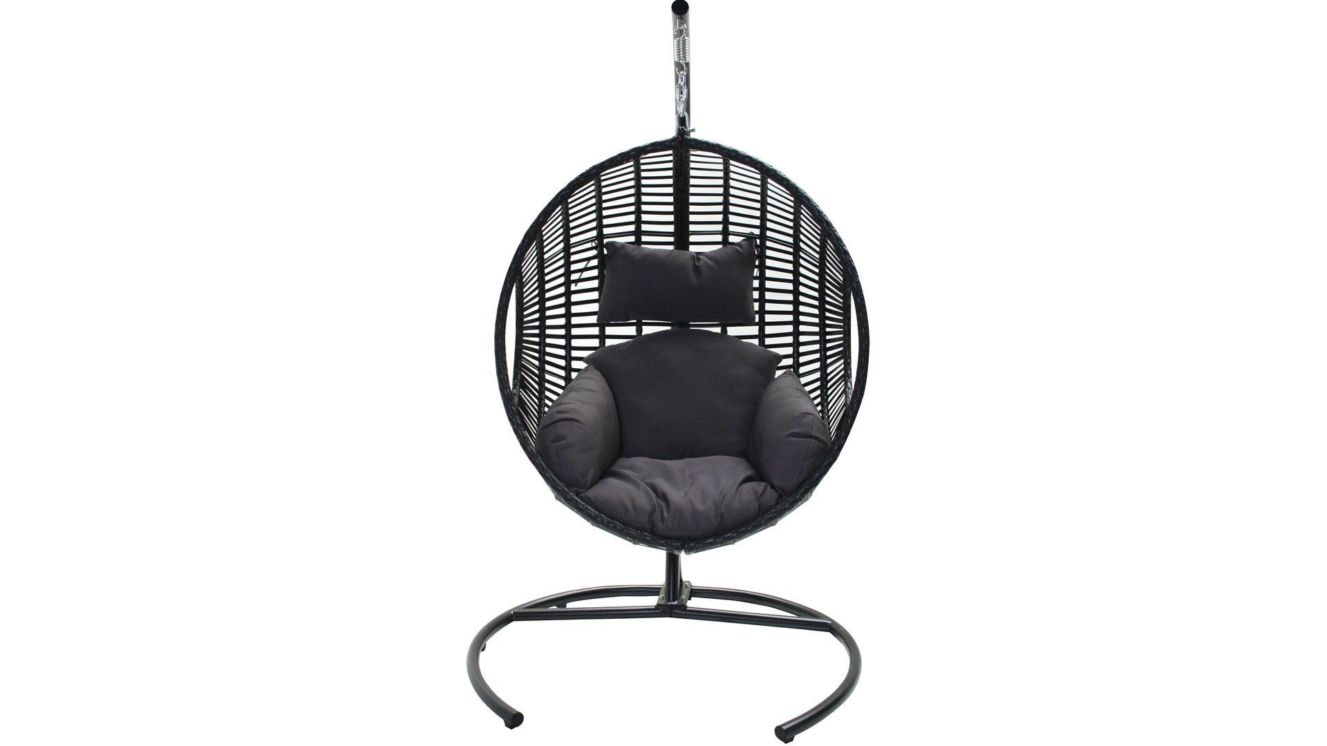 Dieser super tolle Kokon kann mit einer Kette an einem stabilen Metallgestell befestigt werden, sodass Sie entspannt hin und her schaukeln können. Die runde Form sorgt für besonders viel Komfort!