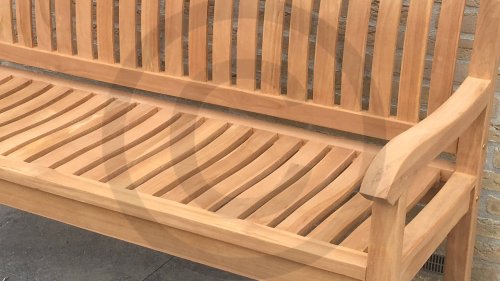 Die qualitativ hochwertigen Bank ist aus langlebigen Teakholz hergetsellt. Der Rücken ist leicht gebeugt, was angenehm komfort gibt.