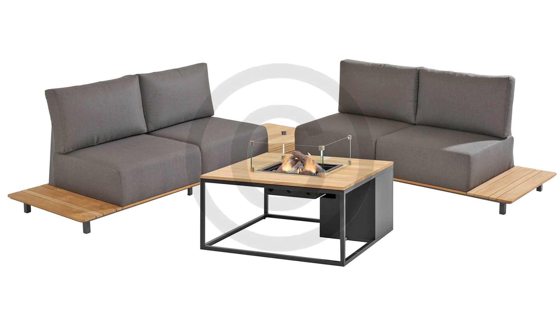 1 x Cosiloft Feuertisch Alu/Teak Black/Teak 100x100xH47cm