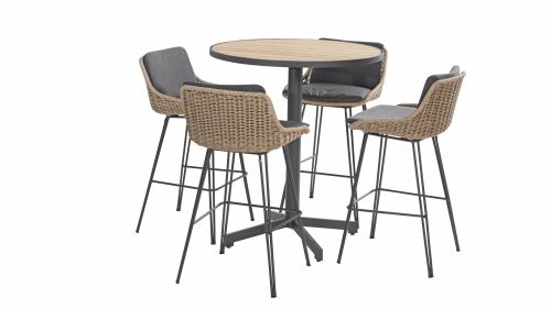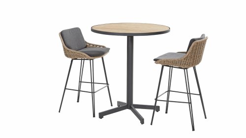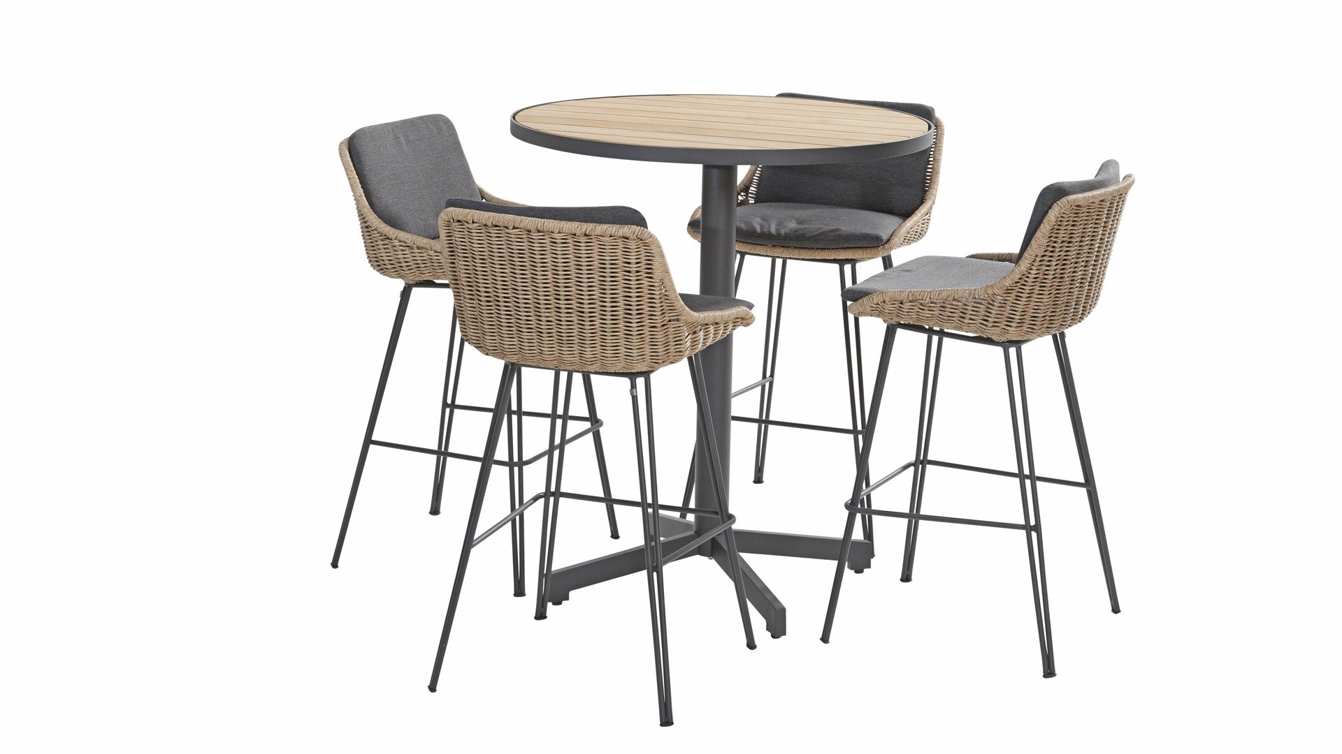Der Taste by 4Seasons Bohemian Barstuhl von Taste 4SO ist eine tolle Ergänzung für Ihren Garten. Ein bequemer Stuhl, den Sie mit vielen Arten von Tischen kombinieren können. Mit dem Bohemian Chair vervollständigen Sie ein schönes Barset. Markant ist das anthrazitfarbene Edelstahlgestell, das durch die dünnen Rundrohre, die in der Spitze zusammenlaufen, modern wirkt. Sie werden auch Spinnenbeine genannt und verleihen diesem Stuhl einen trendigen Charakter. Die luftige Optik findet sich im Cockpit und auch im Sockel wieder, der minimalistische Sockel besteht aus dezenten Edelstahlrohren in anthrazitfarbener Beschichtung. Die anthrazitfarbenen Kissen bilden ein schönes Ganzes, und die Kissen haben auch einen Olefin-Kissenbezug für besten Komfort und hohe Witterungsbeständigkeit.