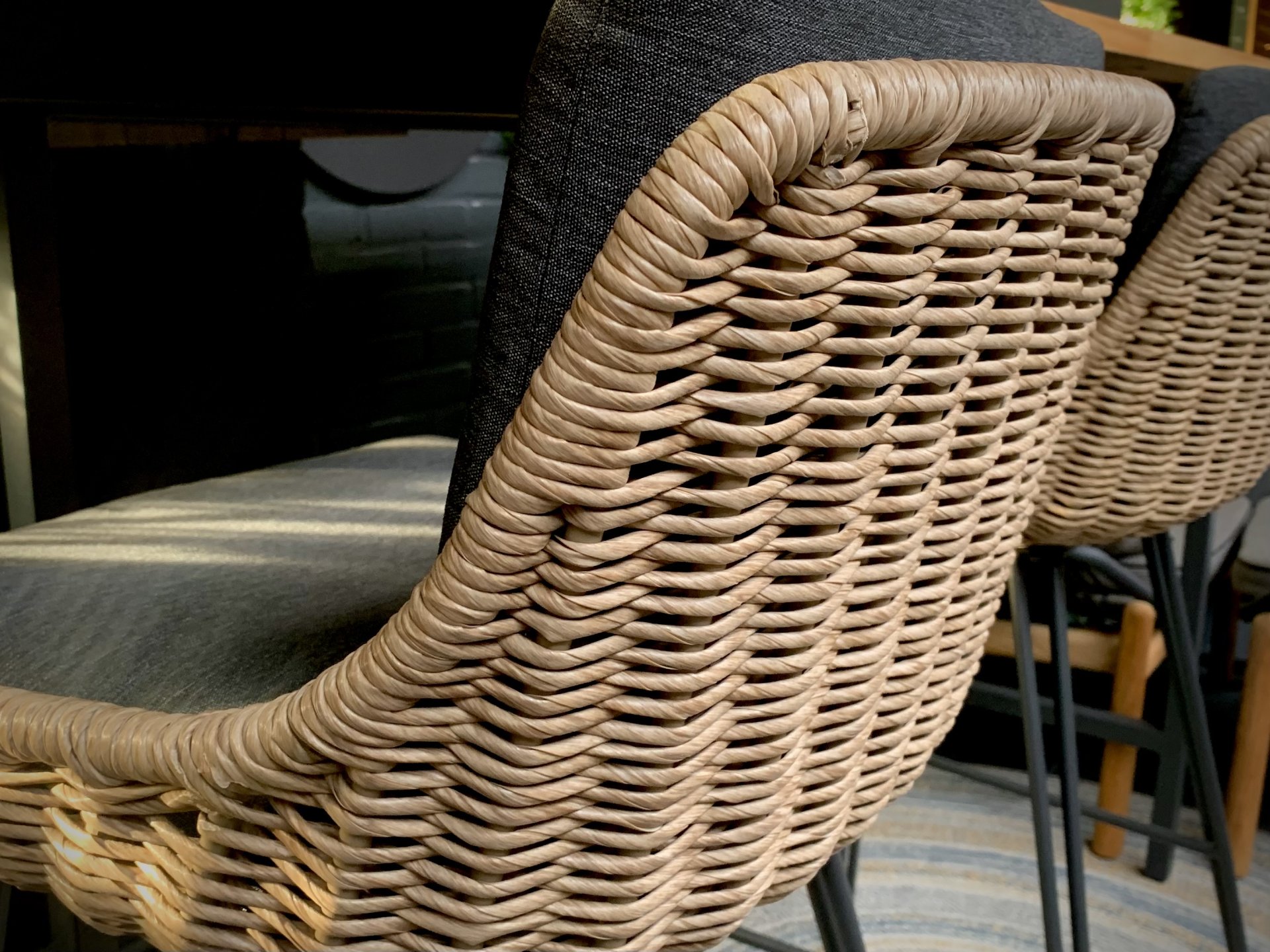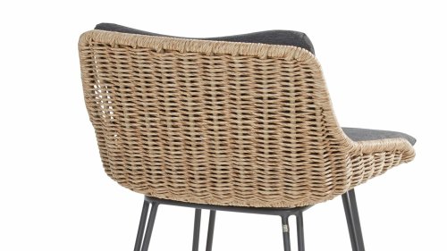 Das Material des 4SO Bohemian Barstuhls ist eine neue Variante des bekannten Flechtwerks. Es ist nämlich ein gezwirntes Flechtgarn in der Farbe Natur. Dies verleiht dem Bohemiam Esszimmerstuhl ein natürliches, seilähnliches Aussehen. Die gesamte Sitzschale des Stuhls besteht aus diesem witterungsbeständigen und pflegeleichten Material, das sich ideal für den ganzjährigen Aufenthalt im Freien eignet.
