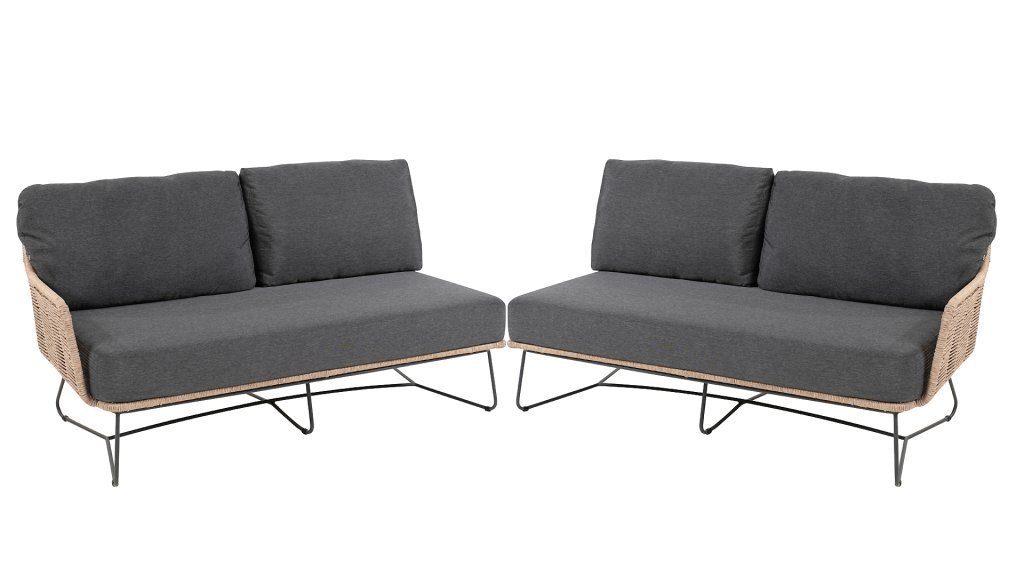 Beautiful, Bold, Belmond. Eine gewagte Kombination aus einem auffälligen Untergestell mit den elegant abgerundeten Ecken des Rahmens und einem geradlinigen Rope-Muster in Anthrazit oder Beige. Taste 4Seasons Belmond hat all das - genießen Sie diese umfangreiche Serie. Durch die Kombination der 2x Sofas haben Sie ein wunderbar geräumiges 4-Sitzer-Loungesofa!