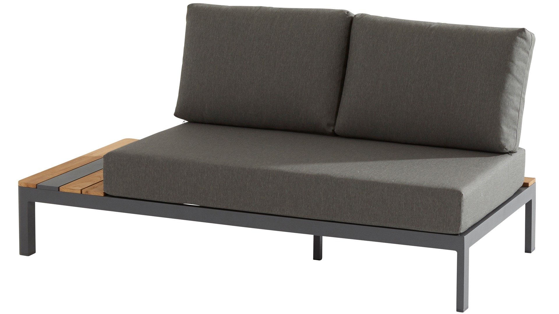 Das Taste by 4 Seasons Meridien Lounge-Set ist ein modernes Plattform-Lounge-Set mit einem eleganten Design. Die Semi-Allwetter-Kissen des Lounge-Sets sind standardmäßig enthalten und bieten einen hohen Komfort. Das Set wird sowohl mit einem Ecktisch als auch mit einer Kissenecke verkauft, der Vorteil der schließenden Kissenecke besteht darin, dass das Set eine zusätzliche Sitzgelegenheit hat. Und dass Sie von der Ecke aus mit den Beinen auf der Couch "lümmeln" können! Die Farbkombination mit Teakholz und Aluminium schafft eine fantastische Optik!