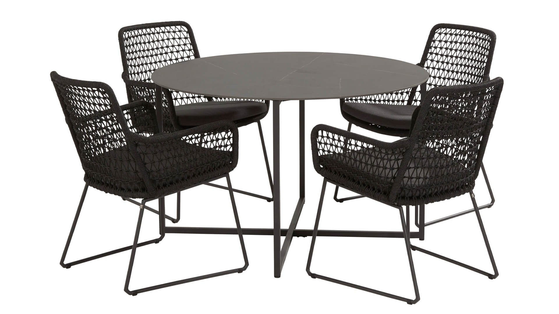 Der Taste by 4 Seasons Athena Gartenstuhl ist in vielerlei Hinsicht einzigartig. Unsere Flechtspezialisten verfügen über jahrelange Erfahrung und sind in der Lage, komplizierte Muster und Knoten zu verarbeiten, die Taste Athena Dining verfügt über eine Wanne mit einzigartig geknüpftem Seil. Die luftige Optik findet sich im Cockpit und auch im Sockel wieder, der minimalistische Sockel besteht aus dezenten Edelstahlrohren in anthrazitfarbener Beschichtung. Zusätzlich sind die Kissen mit einem Olefin-Kissenbezug für besten Komfort und hohe Witterungsbeständigkeit versehen. Genießen Sie dank hochwertiger Materialien und exklusivem Design jahrelang den Athena-Stuhl in Ihrem Garten.