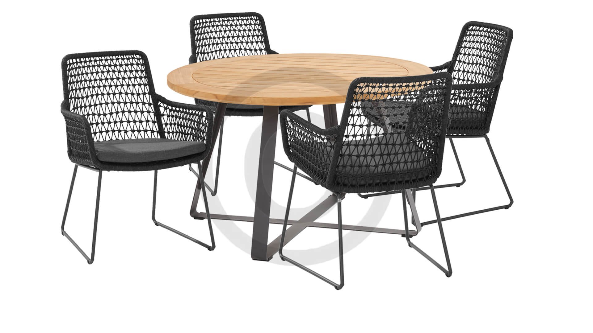 Der Taste by 4 Seasons Athena Gartenstuhl ist in vielerlei Hinsicht einzigartig. Unsere Flechtspezialisten verfügen über jahrelange Erfahrung und sind in der Lage, komplizierte Muster und Knoten zu verarbeiten, die Taste Athena Dining verfügt über eine Wanne mit einzigartig geknüpftem Seil. Die luftige Optik findet sich im Cockpit und auch im Sockel wieder, der minimalistische Sockel besteht aus dezenten Edelstahlrohren in anthrazitfarbener Beschichtung. Zusätzlich sind die Kissen mit einem Olefin-Kissenbezug für besten Komfort und hohe Witterungsbeständigkeit versehen. Genießen Sie dank hochwertiger Materialien und exklusivem Design jahrelang den Athena-Stuhl in Ihrem Garten.