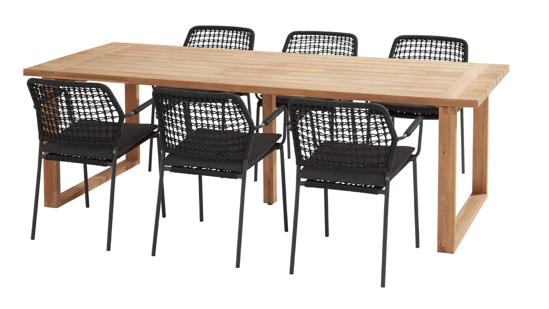 Probieren Sie 4Seasons Barista Dining: voller Geschmack! Der stapelbare Gartenstuhl Barista ist ein echter Alleskönner, herrlich bequem und sehr praktisch und sieht auch noch schick aus. Lässt sich sehr gut mit verschiedenen Arten von Tischen kombinieren. Dieser Stuhl ist in 5 Seilfarben erhältlich: Anthrazit, Grün, Blau, Frozen und Terra Cotta. Sie sehen hier die anthrazitfarbene Variante. So können Sie wählen, welche Farbe am besten zu Ihrer Terrasse passt, oder Sie können eine schöne Kombination aus 2 oder sogar 5 Farben erstellen. Das Seilmaterial ist witterungsbeständig und im Blockmuster geknüpft. Das Seil wird subtil zu den Armlehnen zurückgeführt.