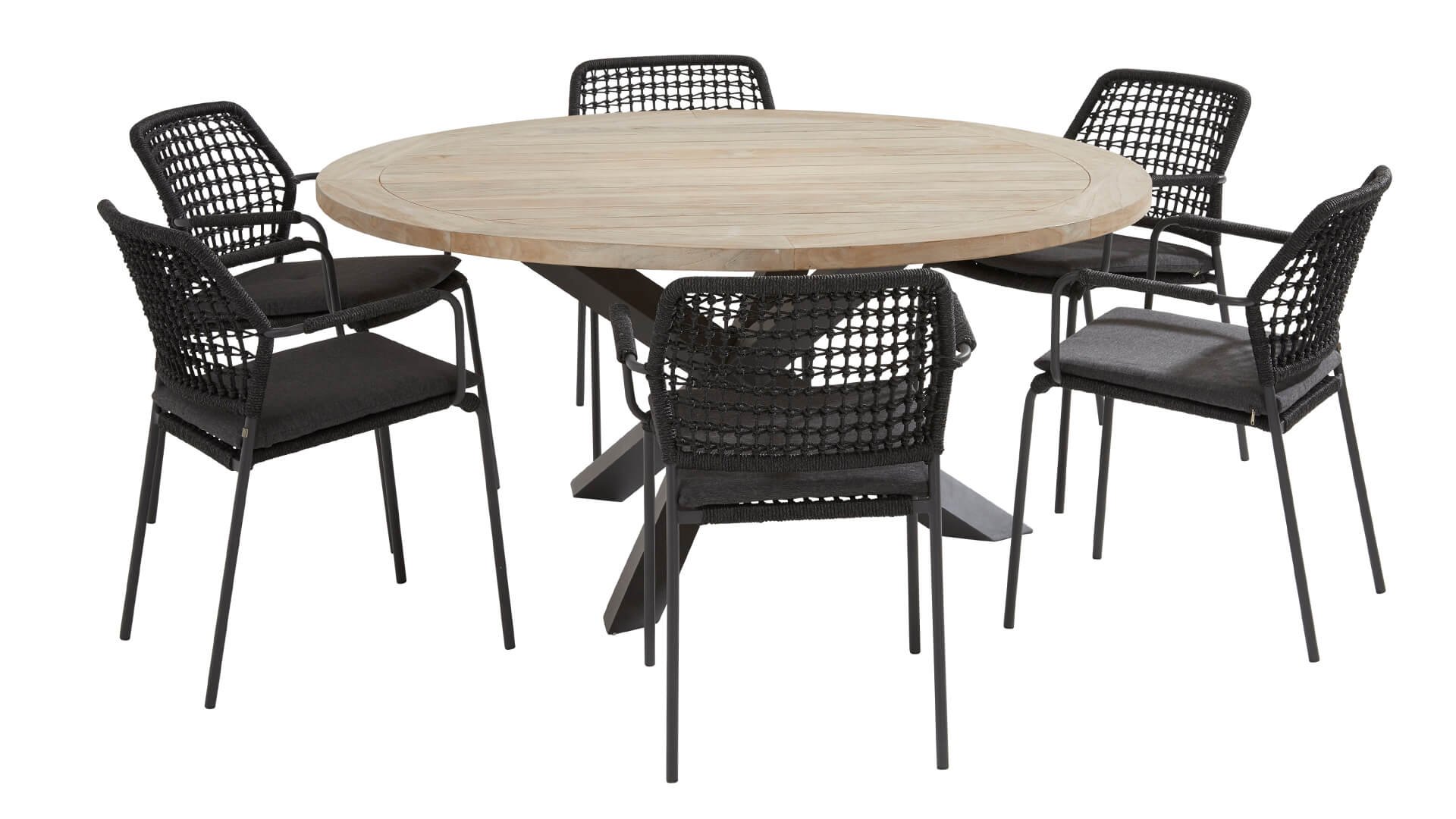 Probieren Sie 4Seasons Barista Dining: voller Geschmack! Der stapelbare Gartenstuhl Barista ist ein echter Alleskönner, herrlich bequem und sehr praktisch und sieht auch noch schick aus. Lässt sich sehr gut mit verschiedenen Arten von Tischen kombinieren. Dieser Stuhl ist in 5 Seilfarben erhältlich: Anthrazit, Grün, Blau, Frozen und Terra Cotta. Sie sehen hier die anthrazitfarbene Variante. So können Sie wählen, welche Farbe am besten zu Ihrer Terrasse passt, oder Sie können eine schöne Kombination aus 2 oder sogar 5 Farben erstellen. Das Seilmaterial ist witterungsbeständig und im Blockmuster geknüpft. Das Seil wird subtil zu den Armlehnen zurückgeführt.