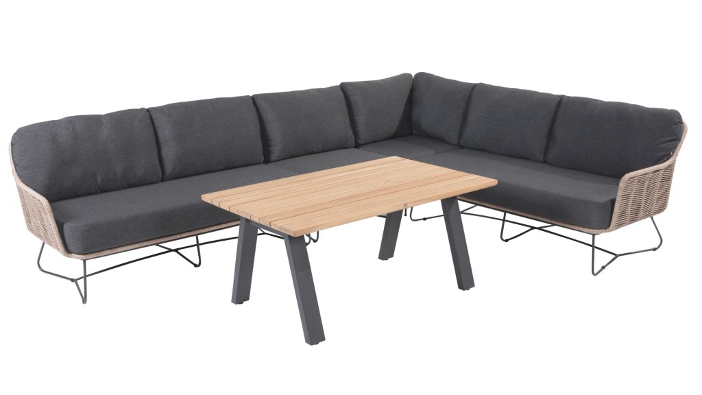 Beautiful, Bold, Belmond. Eine gewagte Kombination aus einem auffälligen Untergestell mit den elegant abgerundeten Ecken des Rahmens und einem geradlinigen Rope-Muster in Anthrazit oder Beige. Taste 4Seasons Belmond hat all das - genießen Sie diese umfangreiche Serie. Jetzt mit dem hohen Couchtisch Ambassador: sorgt dafür, dass Sie sich für Ihre Tasse Kaffee nicht mehr so weit bücken müssen. Der Tisch ist nur einen Strich höher als die meisten Couchtische.