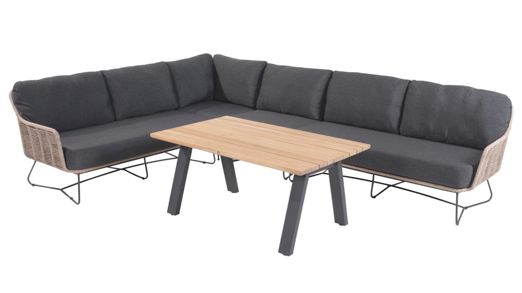 Beautiful, Bold, Belmond. Eine gewagte Kombination aus einem auffälligen Untergestell mit den elegant abgerundeten Ecken des Rahmens und einem geradlinigen Rope-Muster in Anthrazit oder Beige. Taste 4Seasons Belmond hat all das - genießen Sie diese umfangreiche Serie. Jetzt mit dem hohen Couchtisch Ambassador: sorgt dafür, dass Sie sich für Ihre Tasse Kaffee nicht mehr so weit bücken müssen. Der Tisch ist nur einen Strich höher als die meisten Couchtische.