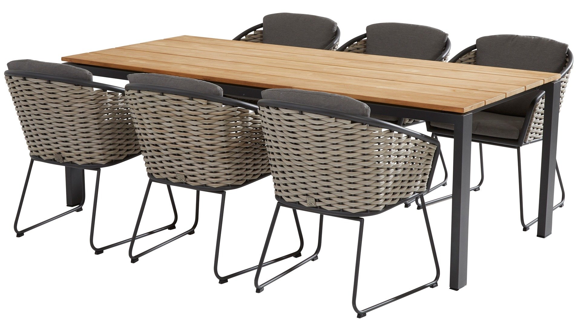 Taste by 4Seasons Bo Dining: Bleiben wir zu Hause! Eingerahmt wird das Geflecht von einem schwarz pulverbeschichteten Rahmen mit geschwungenen Linien, wodurch das Gartenset Bo seinen schicken, modernen Look erhält. Herrlich bequemer Stuhl dank Rücken- und Sitzkissen.