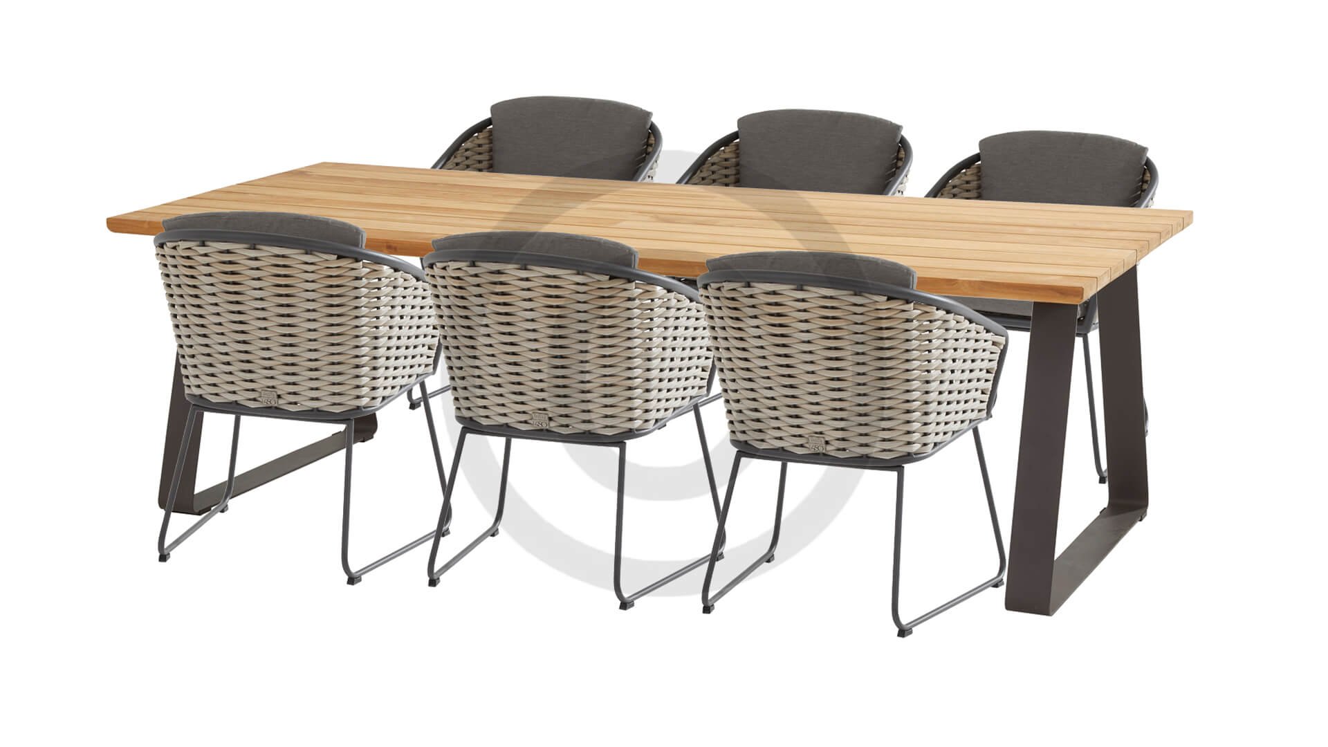 Der Taste by 4Seasons Basso 240 cm Tisch ist ein Tisch von schwerer Qualität. Das elegante Kufenbein in Kombination mit dem warmen Teakholz ergibt ein stabiles Ganzes. Das Mittelbein ist standardmäßig enthalten, aber auf Wunsch kann der Tisch auch ohne Mittelbein verwendet werden.
