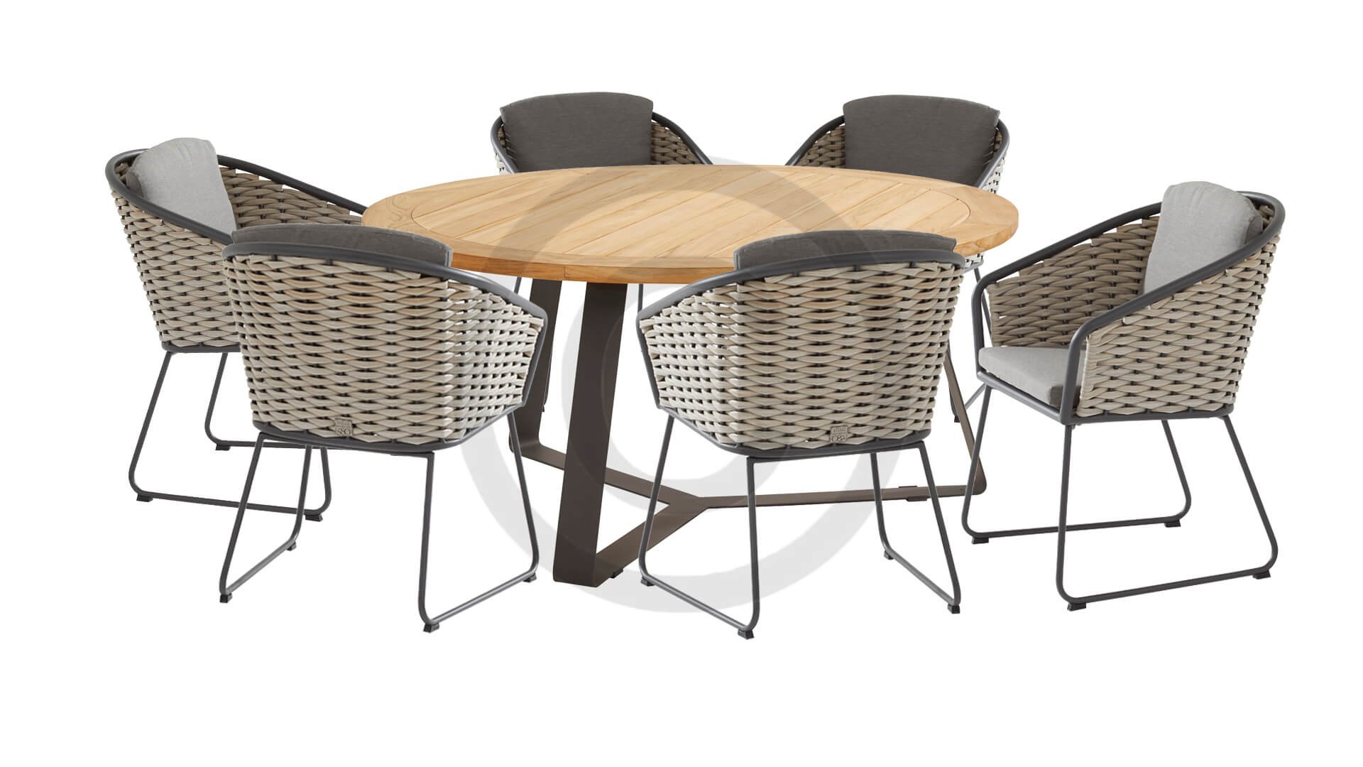 Der runde Tisch Basso 160 von Taste by 4Seasons ist bekannt für seine schwere Qualität. Das dicke Teakholz in Kombination mit dem eleganten Bein ist ein Bild in jedem Garten. Praktisch jeder Esszimmerstuhl passt zu diesem stabilen Tisch. Sehen Sie sich schon an diesem gemütlichen runden Tisch sitzen? Schön zu kombinieren mit dem Prado Lazy Susan Plattenspieler.
