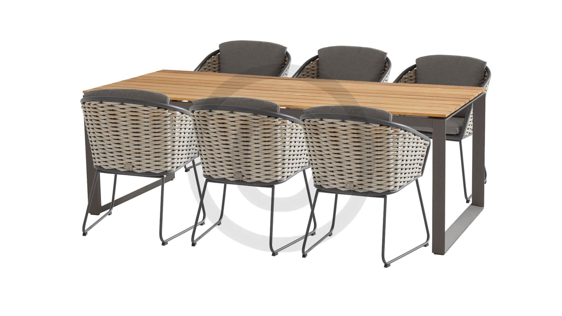 Der Taste by 4 Seasons Outdoor Heritage Table 220cm Matt Carbon Teak ist ein hochwertiger Tisch. Das Industriedesign mit seinem eleganten Schlepper lässt sich gut mit der gesamten 4 Seasons Dining-Kollektion kombinieren. Der Aluminiumrahmen ist pulverbeschichtet und rostet nicht. Das Teakholz muss nicht behandelt werden. Wer der natürlichen Alterung vorbeugen möchte, kann den Protector von 4Seasons verwenden.