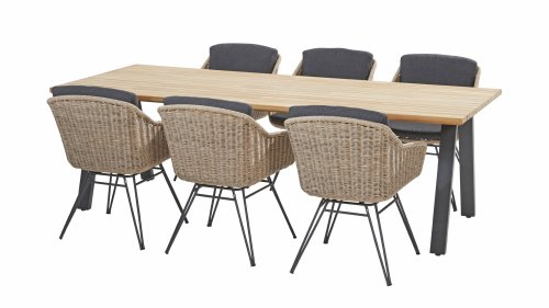 Der böhmische Gartenstuhl Taste by 4 Seasons von Taste 4SO ist eine großartige Ergänzung für Ihren Garten. Ein bequemer Stuhl, den Sie mit vielen Arten von Tischen kombinieren können. Vervollständigen Sie ein schönes Ess-Set mit dem böhmischen Stuhl. Der anthrazitfarbene Edelstahlrahmen ist auffällig und sieht aufgrund der dünnen runden Rohre, die in der Spitze zusammenkommen, modern aus. Sie werden auch Spiderlegs genannt und verleihen diesem Stuhl einen trendigen Charakter. Das luftige Aussehen findet sich im Cockpit und auch im Sockel. Der minimalistische Sockel besteht aus subtilen Edelstahlrohren in einer anthrazitfarbenen Beschichtung. Die anthrazitfarbenen Kissen bilden ein schönes Ganzes. Darüber hinaus verfügen die Kissen über einen Olefin-Kissenbezug für besten Komfort und hohe Wetterbeständigkeit.