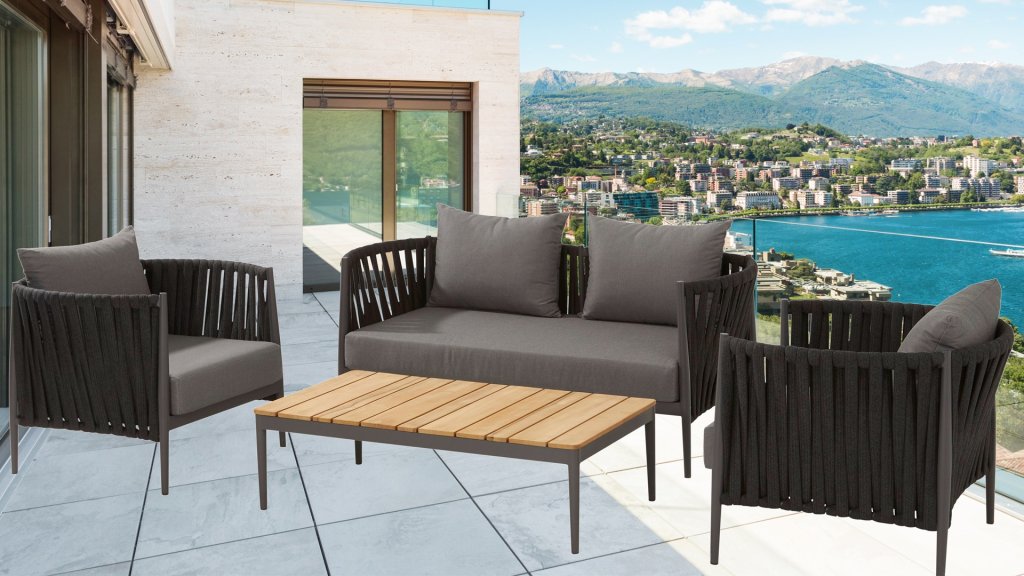 Die Taste Cantori Rahmen wird mit natürlichen Anthrazit farbige Kunststoff Faser in Form von Schnüre (Rope) abgedeckt. Die Kissen kommen in einer schönen anthrazit farbenen Olefin-Stoff. Die 4SO Cantori Gartenmöbel verfügen über dicke und sehr bequeme Kissen mit Bezügen aus Olefin-Material, das extrem witterungsbeständig und langlebig ist. Einfach den Reißverschluss öffnen und bei 30 Grad waschen / trocknen. Ein andere Merkmal der Taste 4Seasons Cantori Loungegruppe ist dass er sich aufgrund, des tieferen sitzes, sehr gut für große menschen eignet! Ein weiteres einzigartiges Produkt von 4Seasons Outdoor!