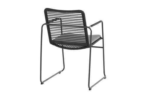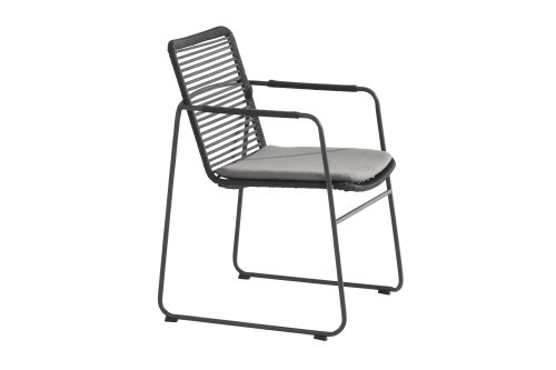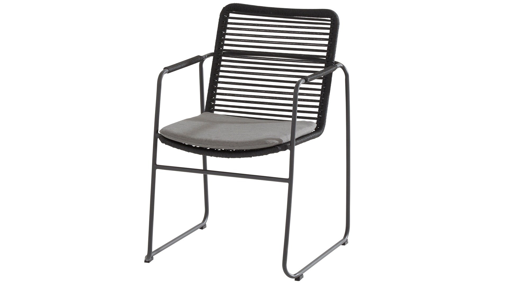 Der Elba Dining Chair von Taste by 4Seasons besteht aus einem pulverbeschichteten Edelstahlgestell mit gespanntem Rope. Das Rope hat einen harten Kern, sodass es sich kaum dehnt. In Kombination mit dem serienmäßig mitgelieferten Sitzkissen ist dieser Stapelstuhl sehr bequem.