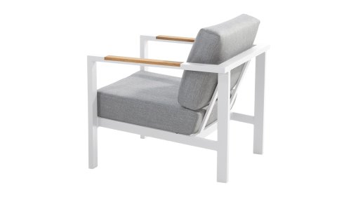 Taste Outdoor Ginger Loungegruppe ist eine sehr bequeme und robuste gestylten Lounge mit modernem Design. Ein entspanntes Set, um ganz in Ruhe mit einem guten Buch oder der aktuellsten Zeitschrift zu relaxen. Taste Ginger ist in neutralen Farbtönen ausgeführt und passt daher in fast jedem Garten. Der Rahmen ist aus hochwertigem White pulverbeschichtetem Aluminium und abgefertigt mit wetterfest Teak Holzerner Armlehnen. Die graue Kissen sind extra dick und einladend. Der Stoff ist wetterbeständig und hat ein robustes Aussehen. Unter den Sitzkissen befindet sich eine Textileen-Bespannung zur Erhöhung des Sitzkomforts.