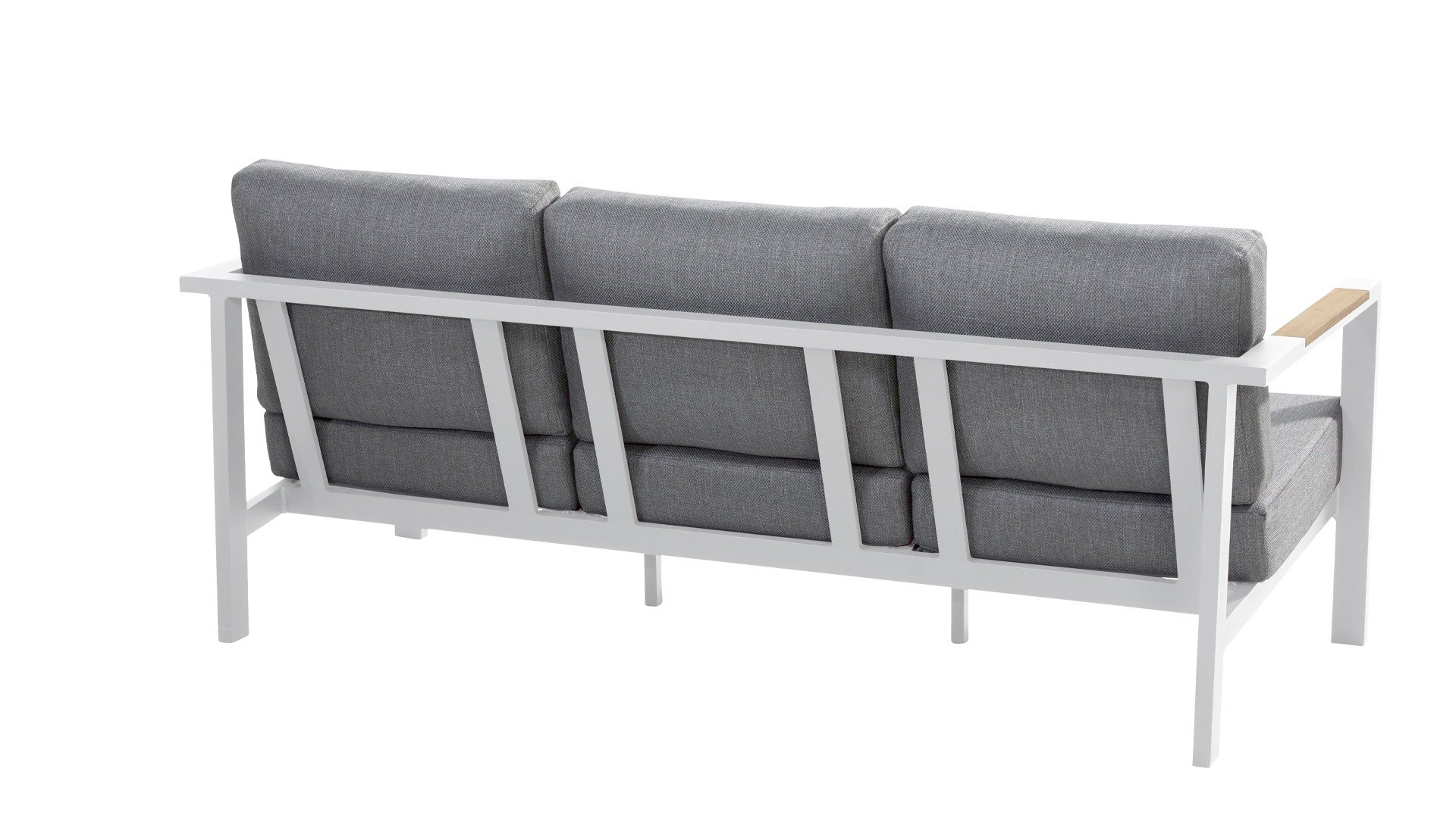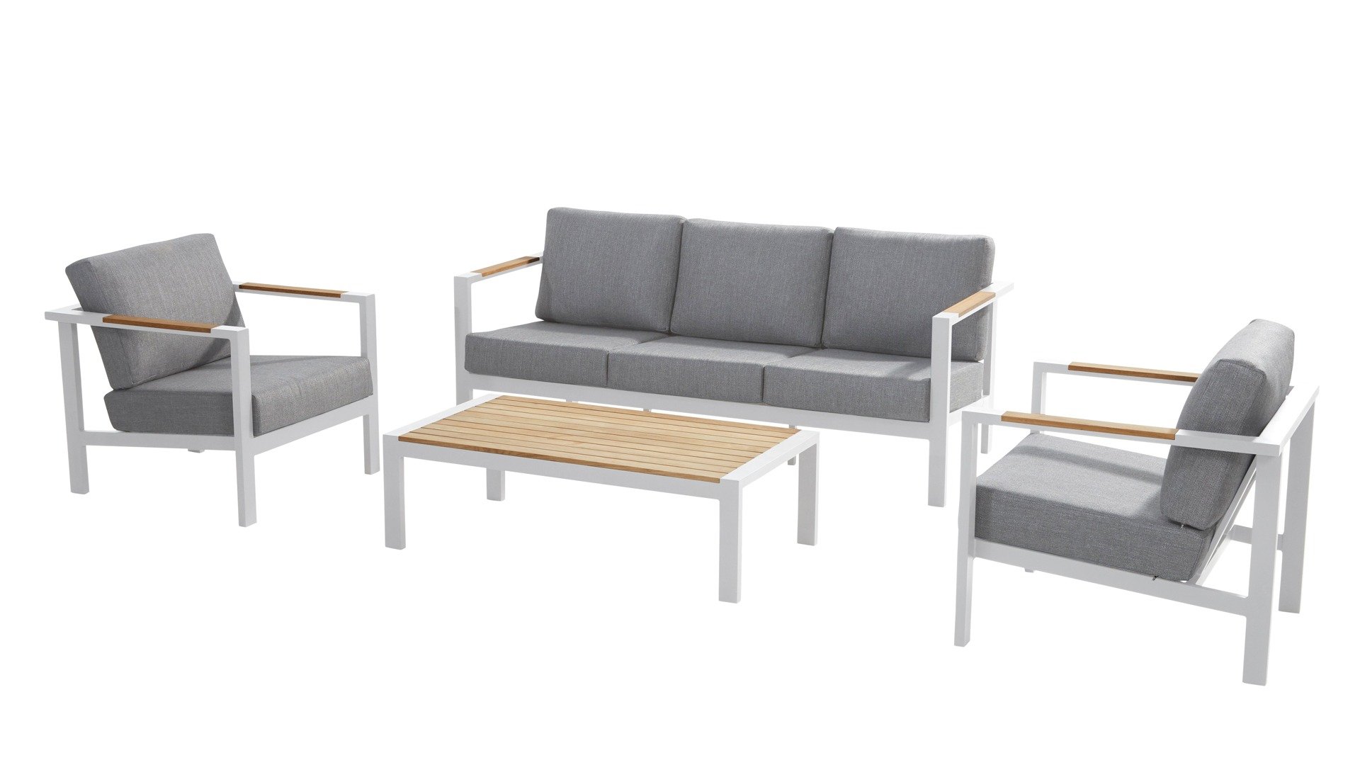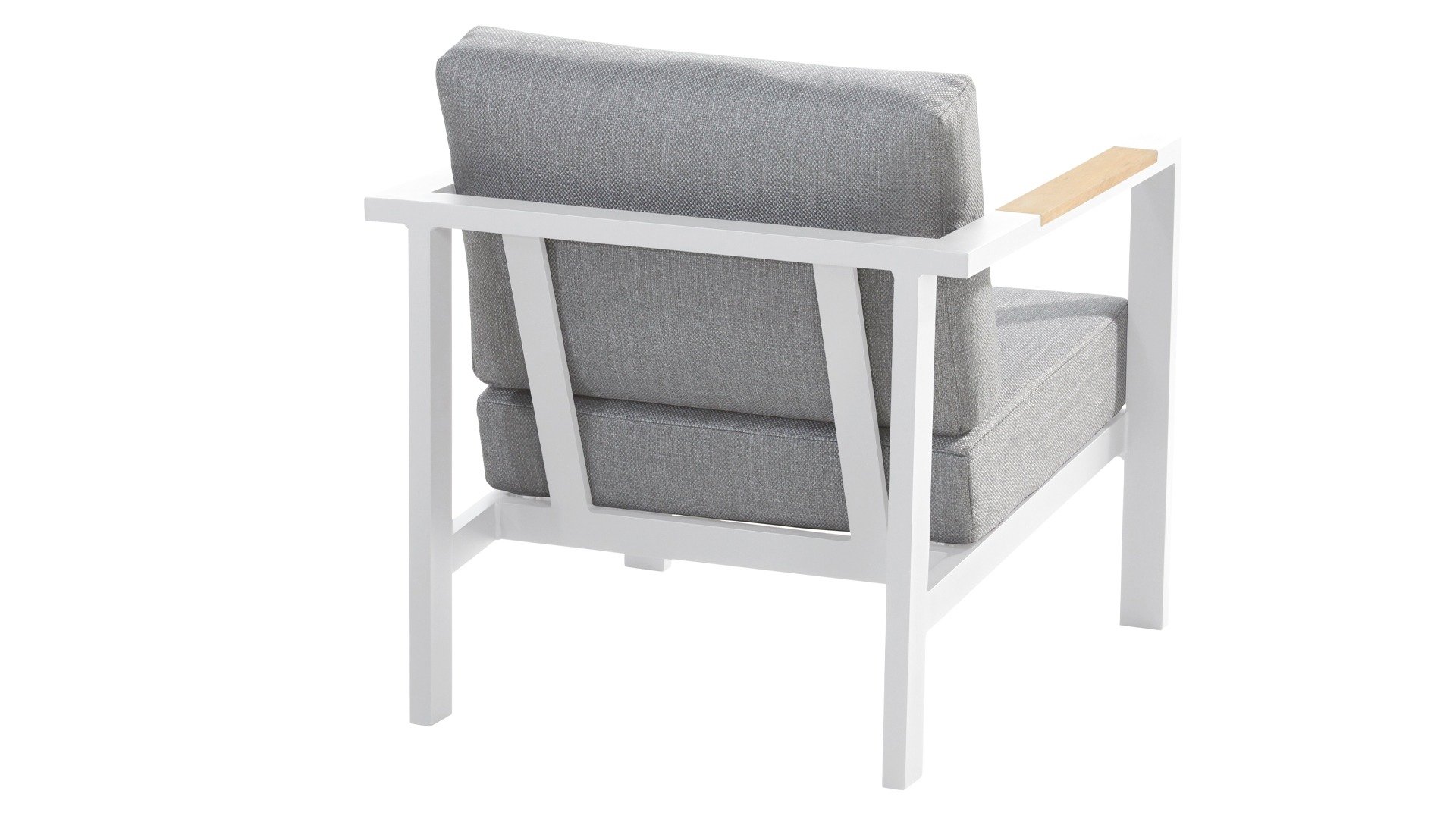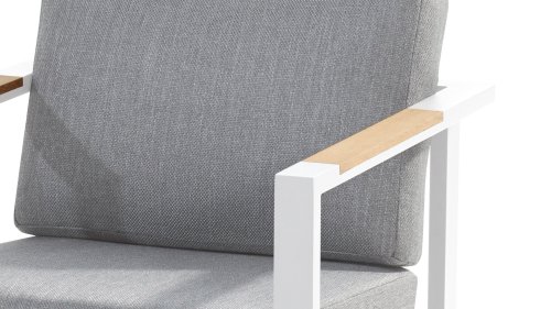 Der Taste Ginger kommt in ruhigen neutralen Farben und passt daher in fast jeden Garten. Das Gestell besteht aus hochwertigem, pulverbeschichtetem Aluminium mit witterungsbeständigen Armlehnen aus Teakholz, die hell grauen Kissen sind extra dick und wirken einladend. Der Stoff ist witterungsbeständig und hat ein robustes Aussehen. Die luxuriösen Kissen haben einen abnehmbaren Bezug aus Olefin-Stoff, der bei 30 Grad gewaschen und getrocknet werden kann. Olefin ist sehr UV-beständig und hält Regen, Kälte und warmen Temperaturen stand.